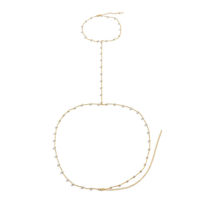 欧美跨境饰品 夏季仿珍珠腰链百搭简约时尚沙滩身体链 女胸链