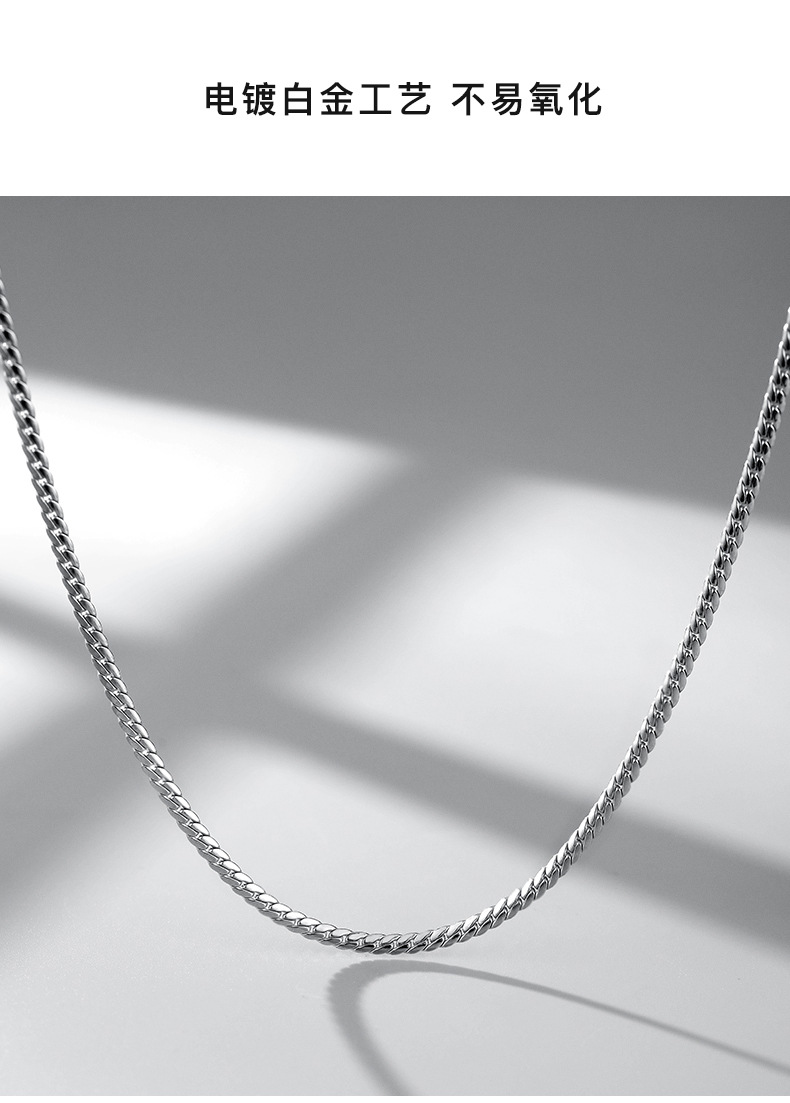 925镀银细古巴链男潮流高级感项链 百搭简约素链锁骨链男款