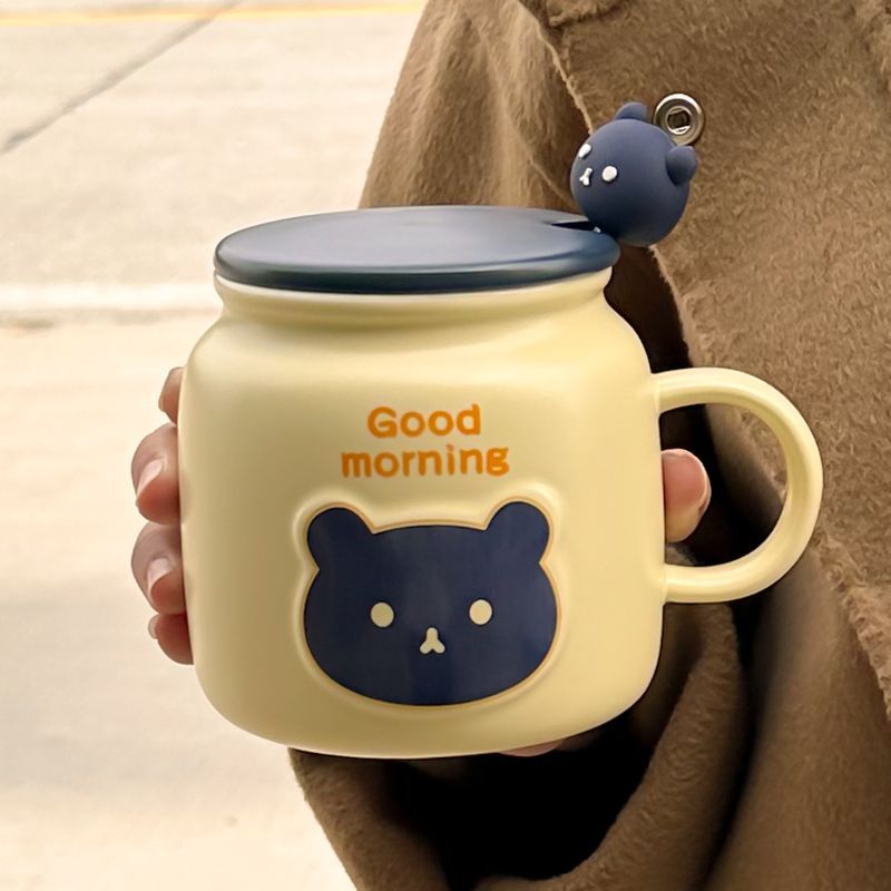 奶fufu小熊陶瓷马克杯浮雕杯子ins高颜值带盖勺大容量咖啡牛奶杯