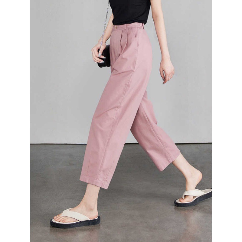 减龄镰刀裤女高腰显瘦好搭九分裤休闲裤子日系专柜外贸出口粉色