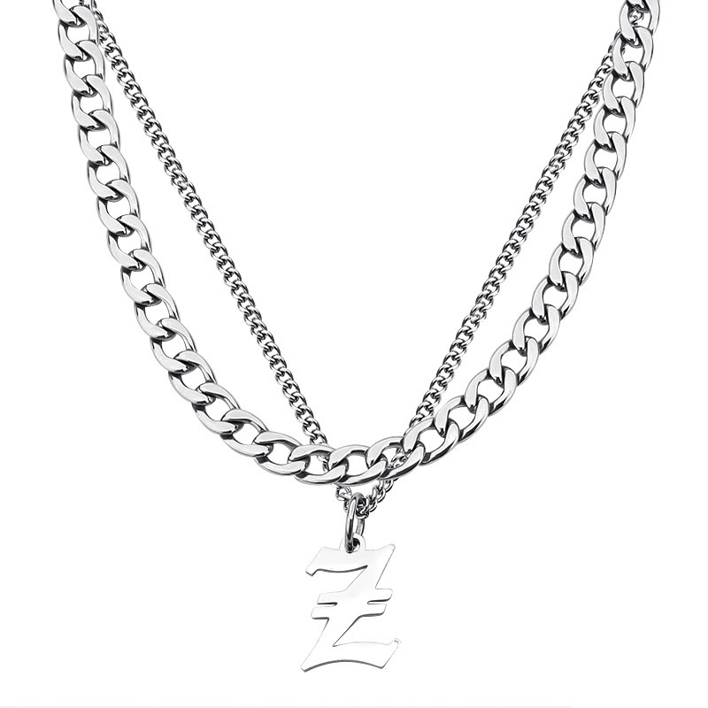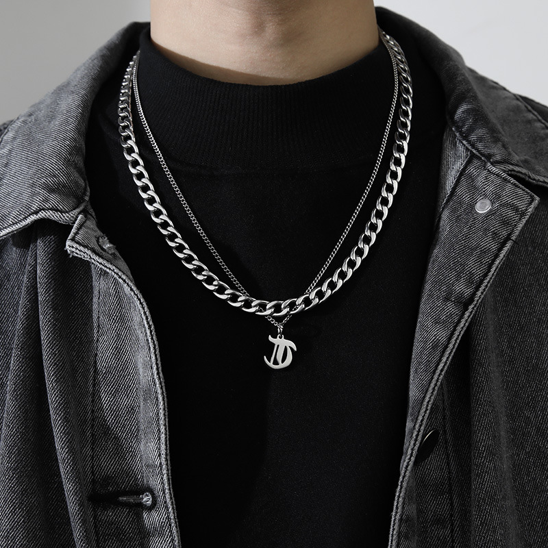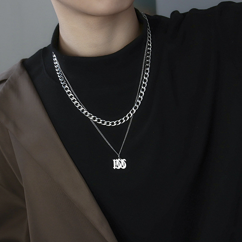 古巴字母项链男潮嘻哈小众毛衣链子配饰男生潮牌百搭男士吊坠