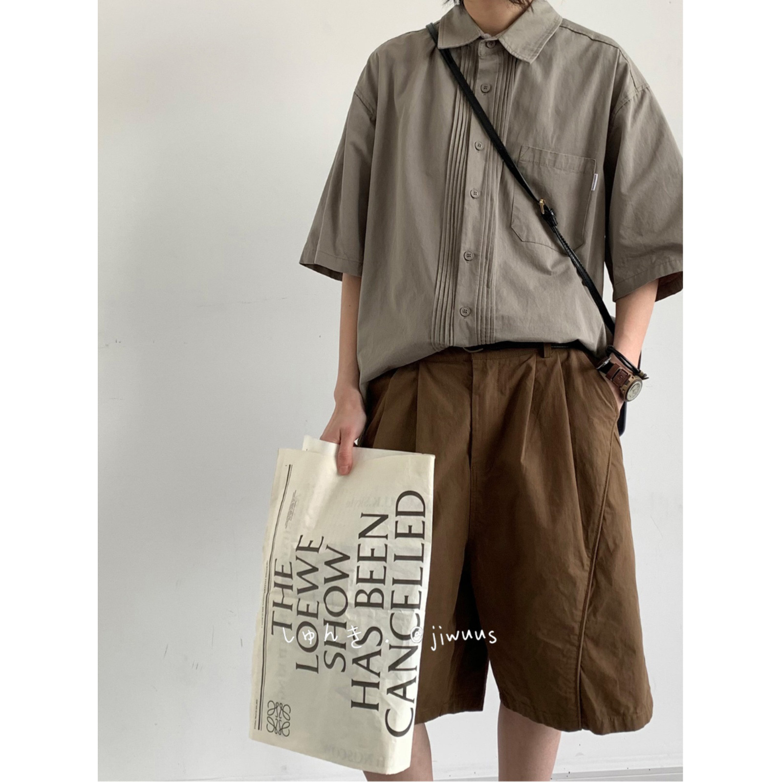 日系复古小众短袖衬衫男夏季新款设计感廓形古着衬衣外套上衣