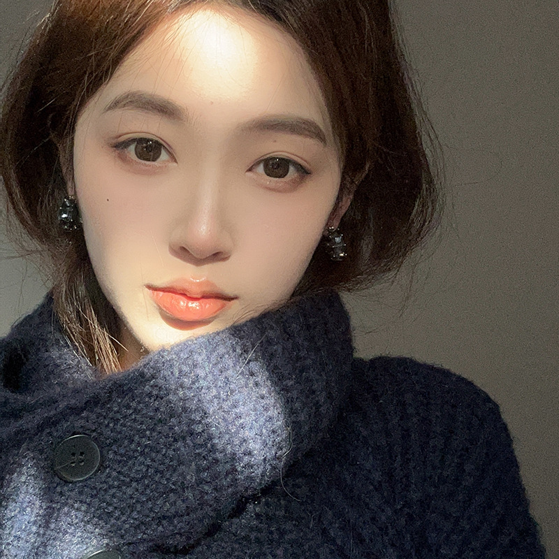 复古高级感灰色锆石耳环女 ins小众气质水晶耳圈耳扣个性轻奢耳饰