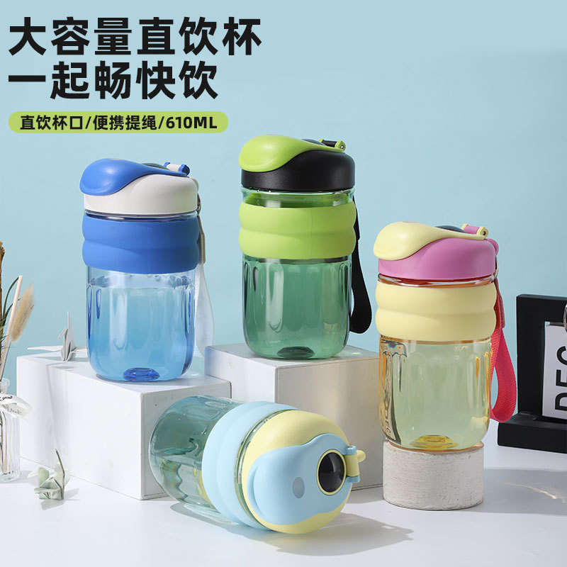 网红新款大容量塑料杯高颜值学生便携户外手提防摔耐高温直饮水杯