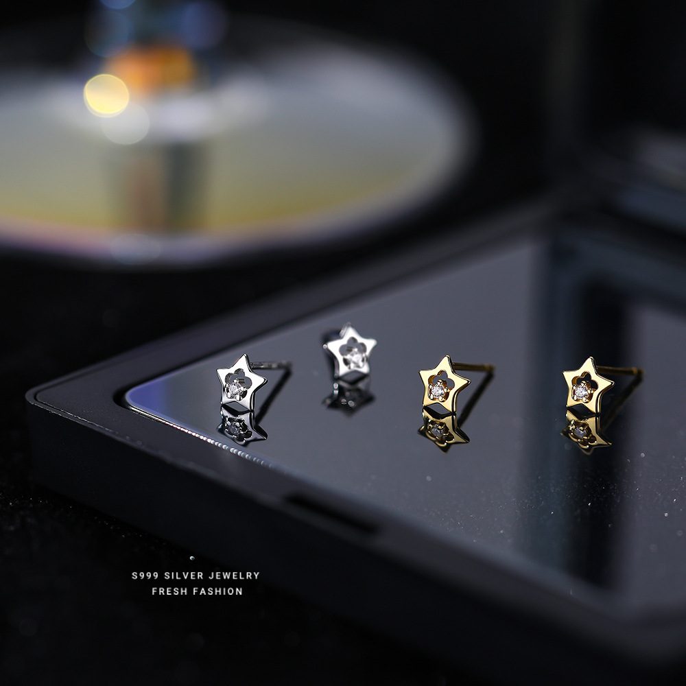 s999足银星中有你五角星闪钻耳钉女森系甜美简约小巧镶钻镂空耳饰