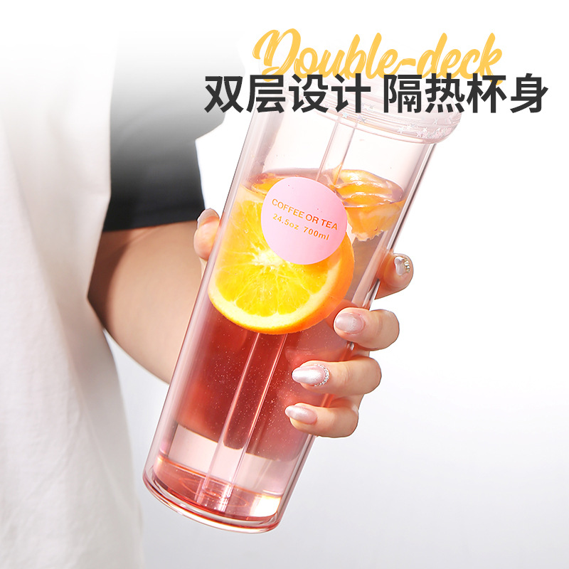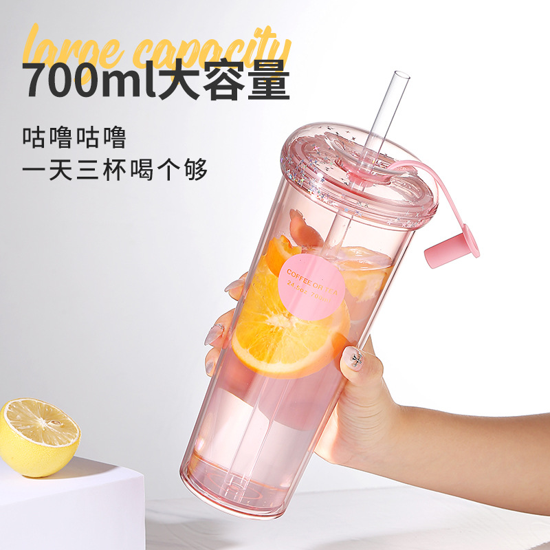 新款高颜值大容量吸管杯女生办公室饮料果汁水杯礼品