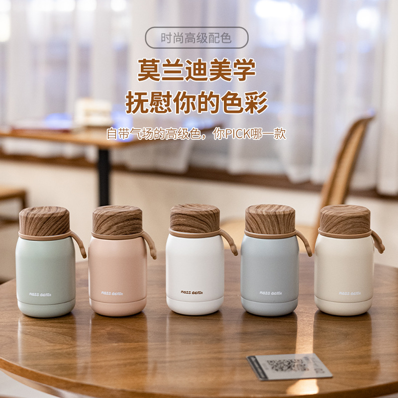 木纹盖迷你保温杯304不锈钢口袋杯小容量户外便携女学生小巧水杯
