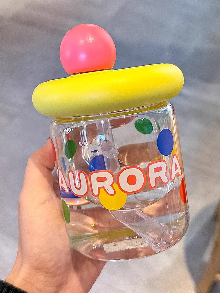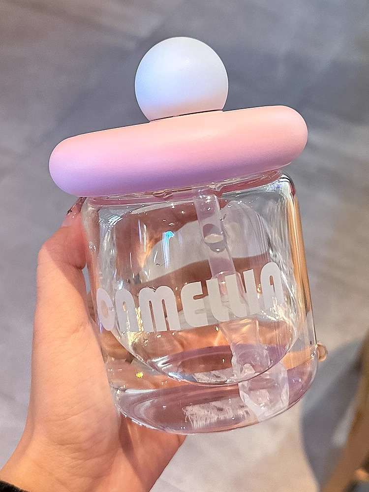 玻璃杯家用耐高温带盖吸管水杯女生高颜值新款办公室杯子可爱