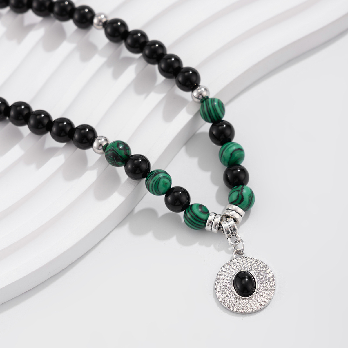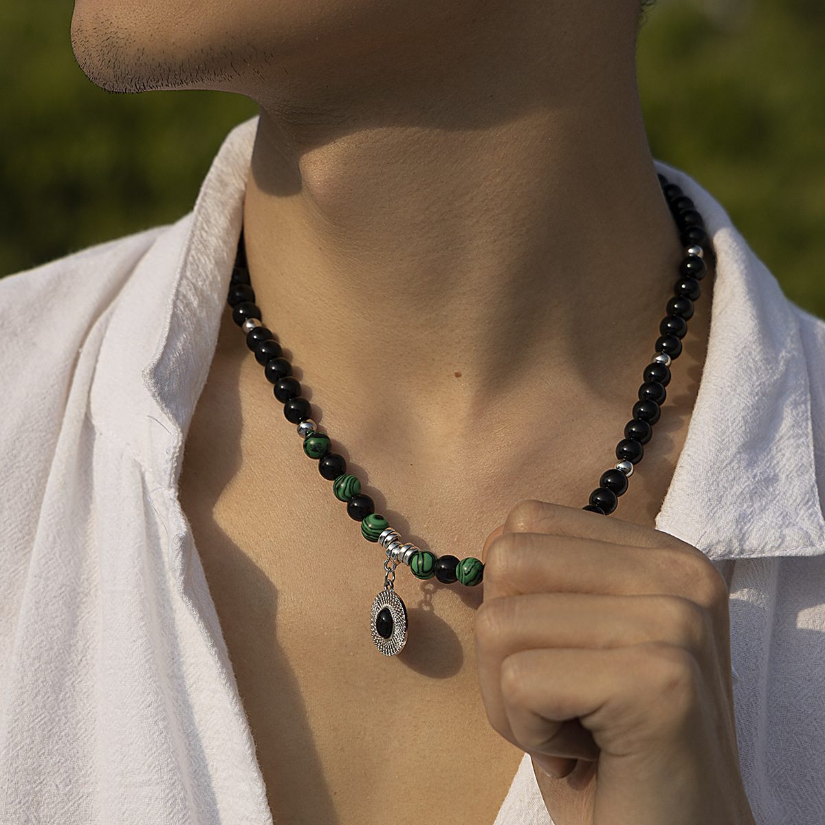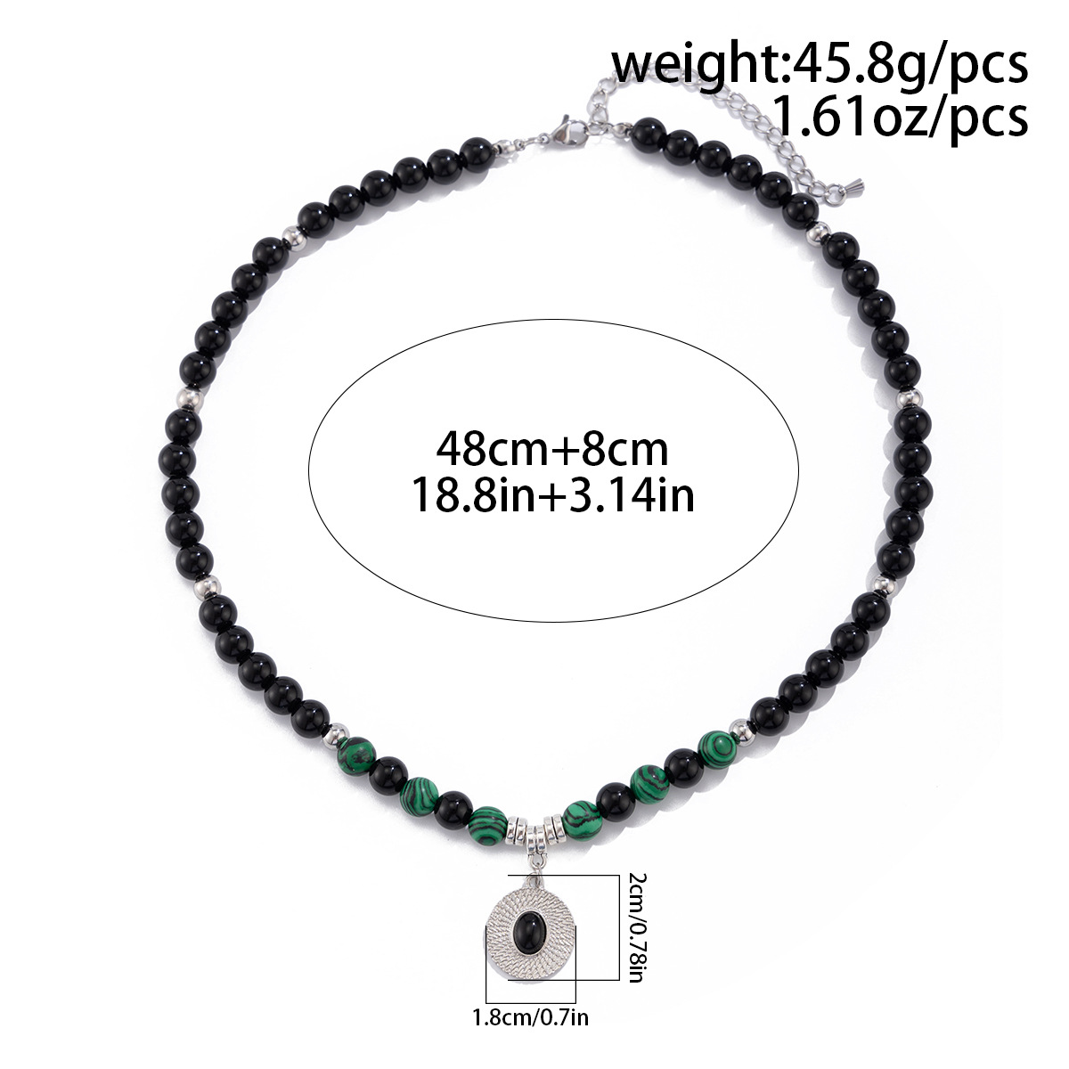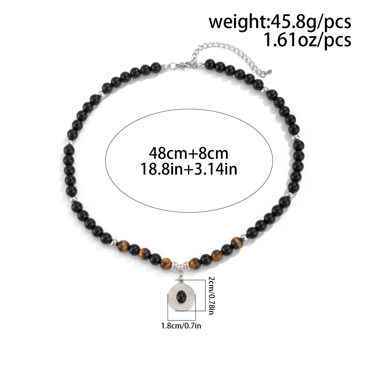 欧美跨境饰品 男士复古钛钢串珠虎石项链 小众高级感嘻哈百搭项链