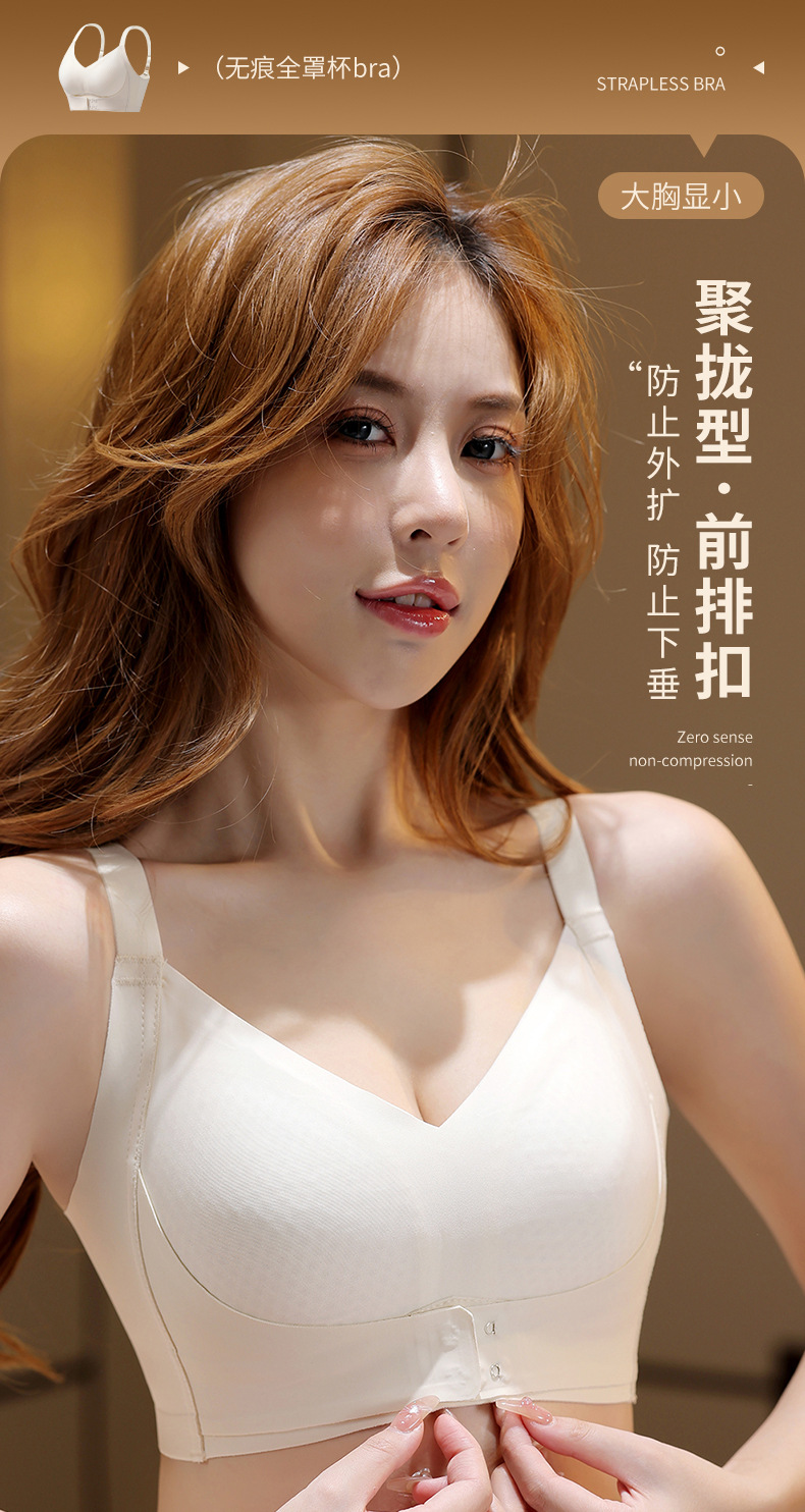 前扣提拉超薄杯大胸显小内衣女薄款防下垂文胸夏透气胸罩