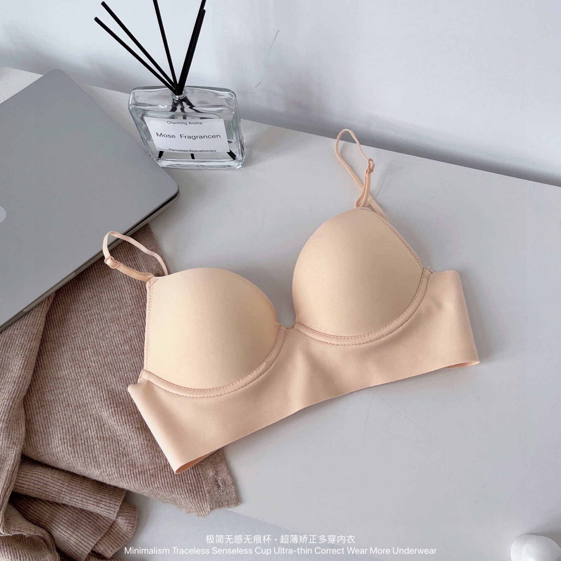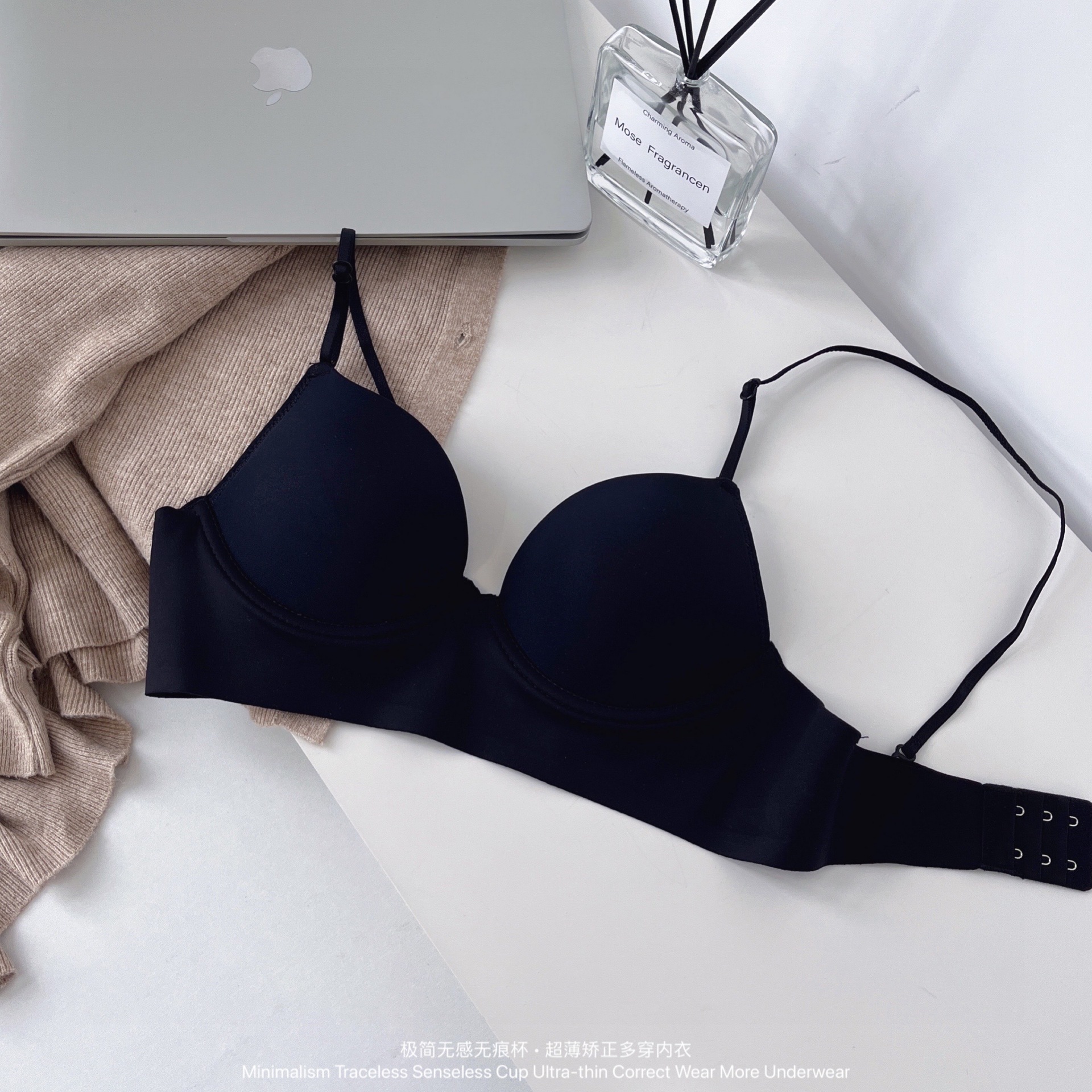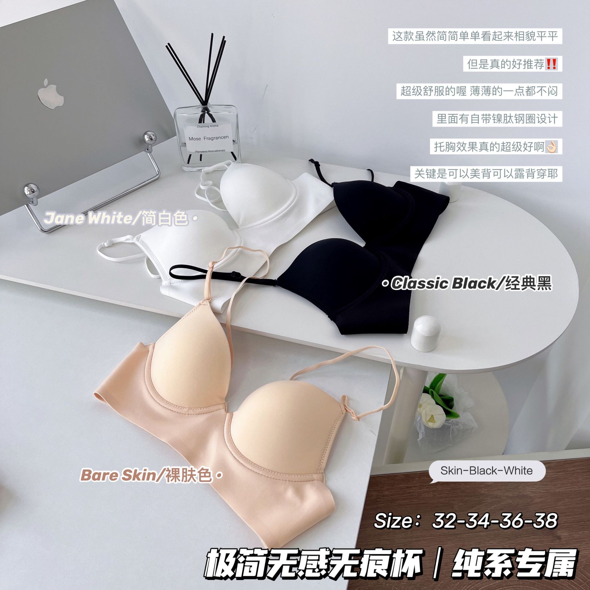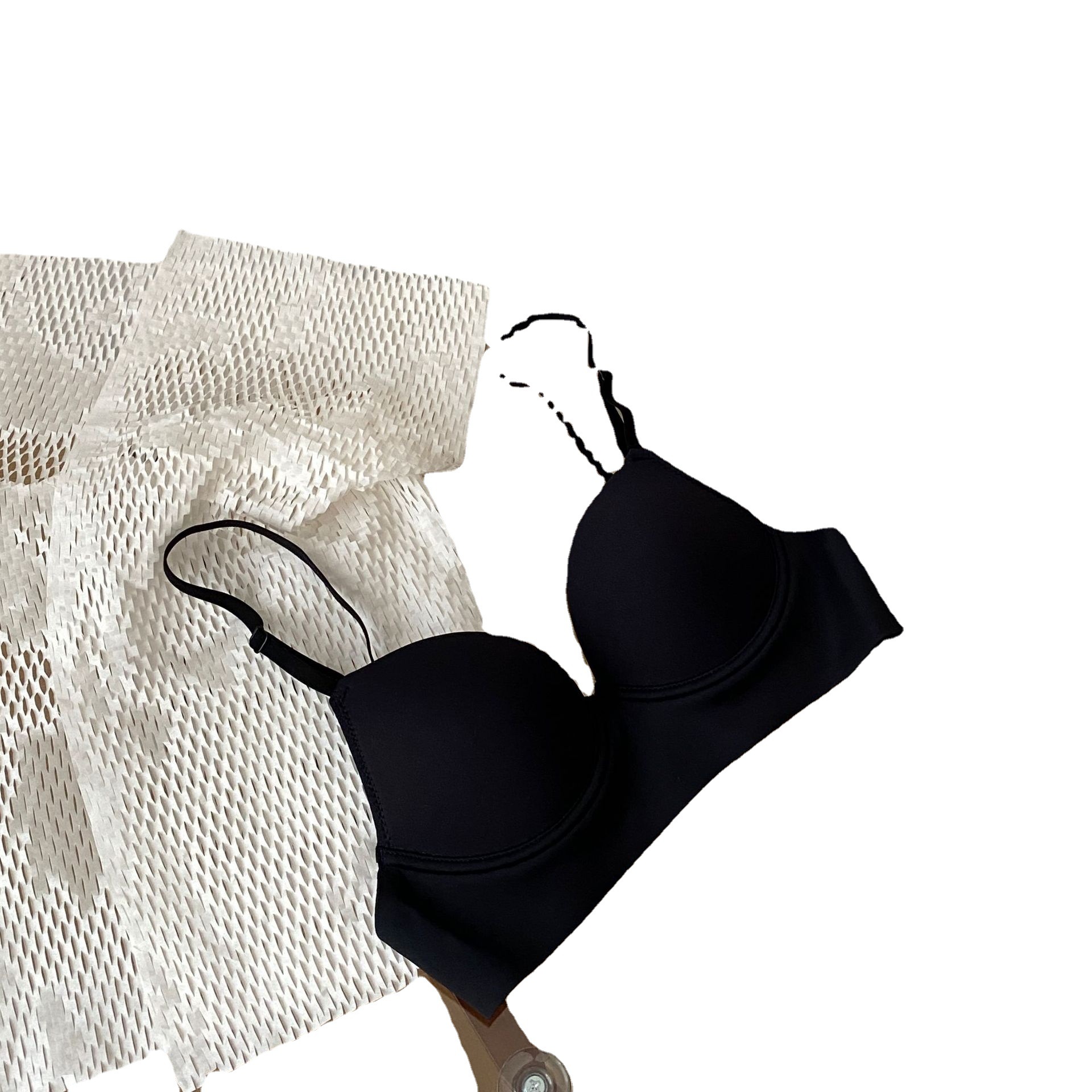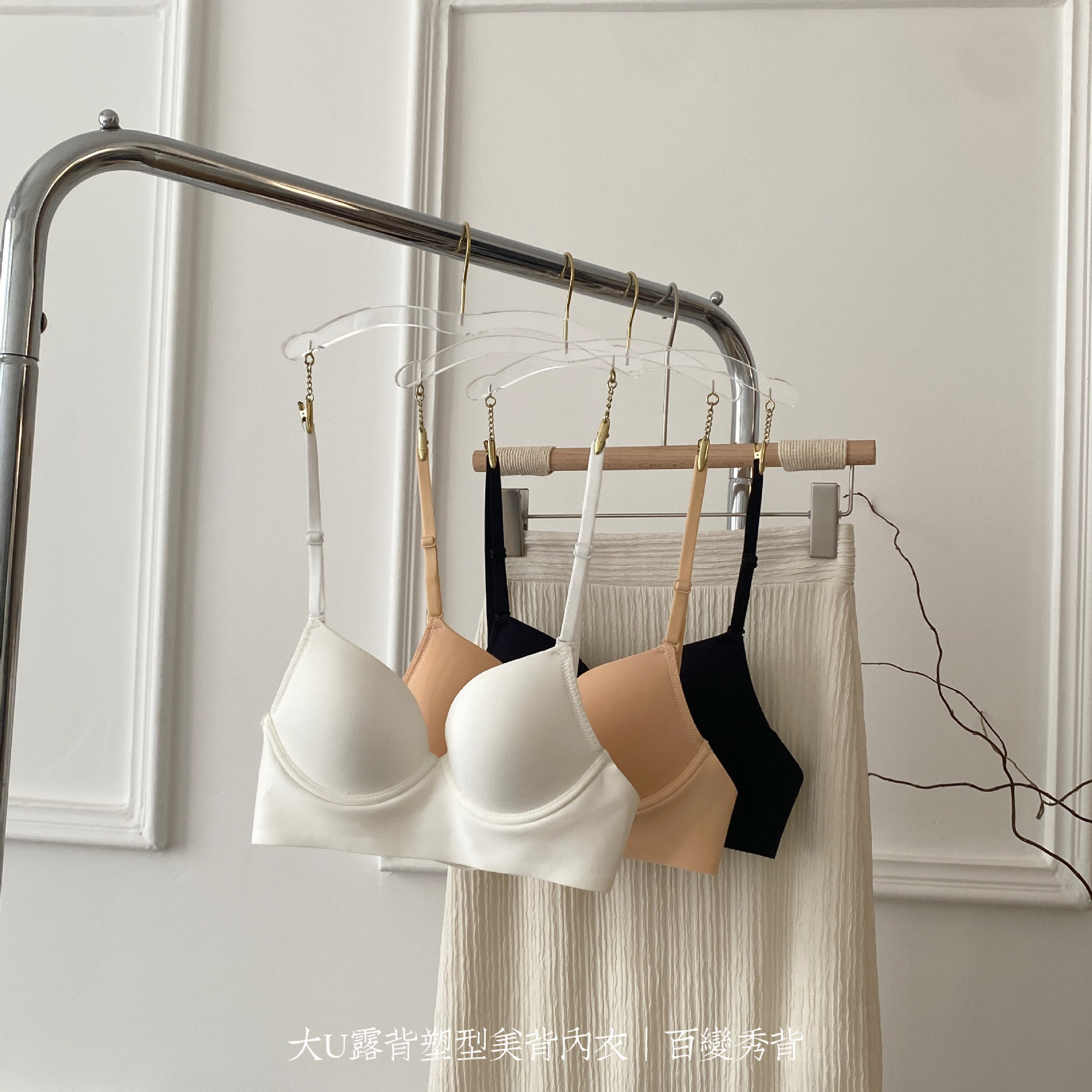 大U露背美背内衣一体式薄款隐形无痕聚拢上托文胸夏挂脖交叉胸罩