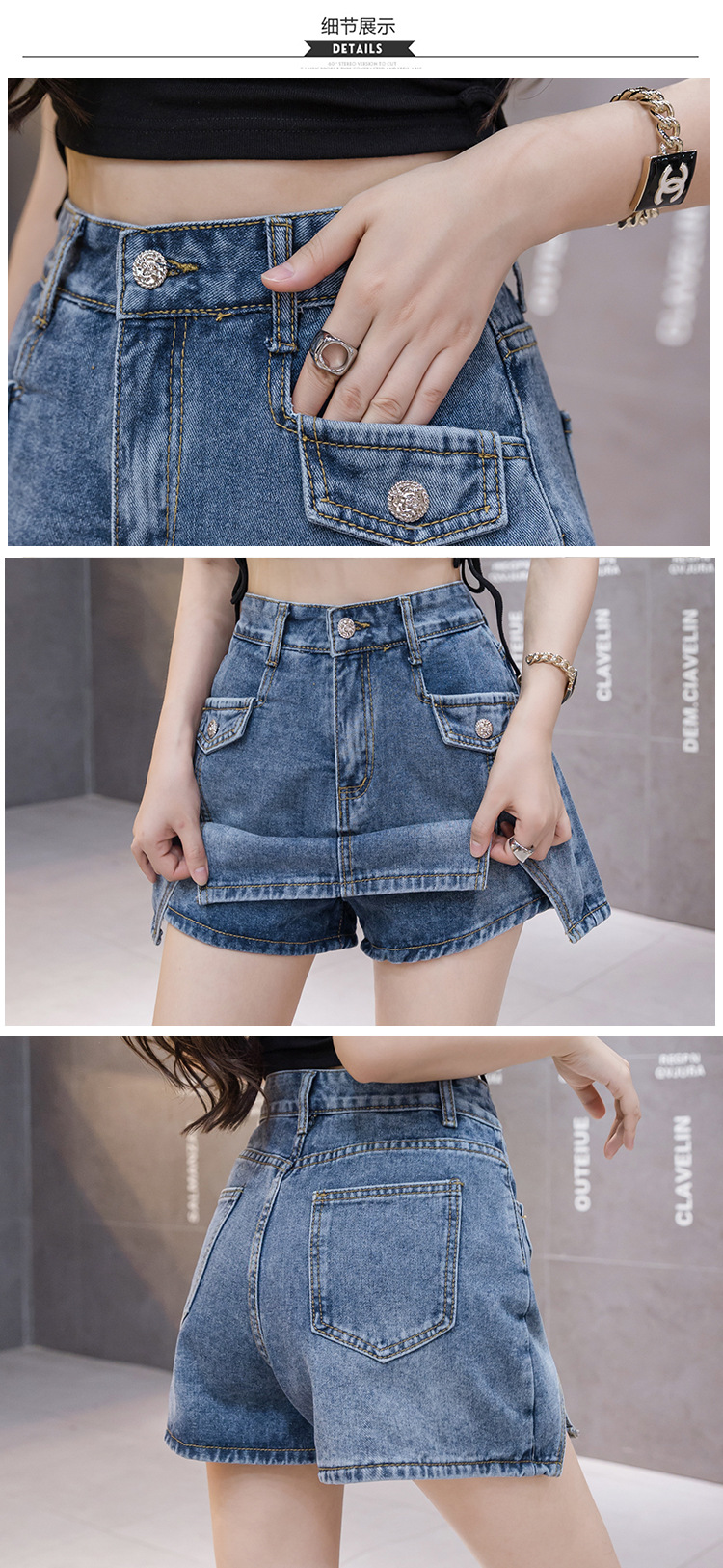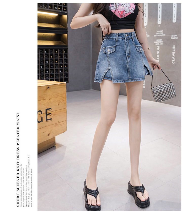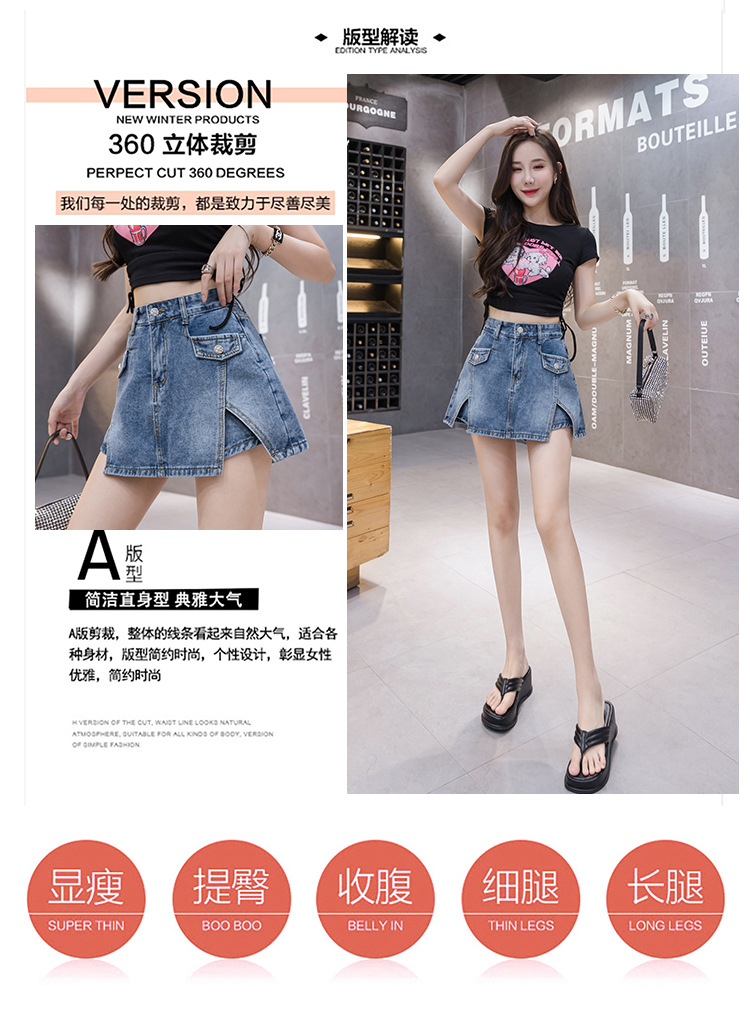 新款夏秋季牛仔半身裙裤裙个性性感修身显瘦开叉口袋短裙女