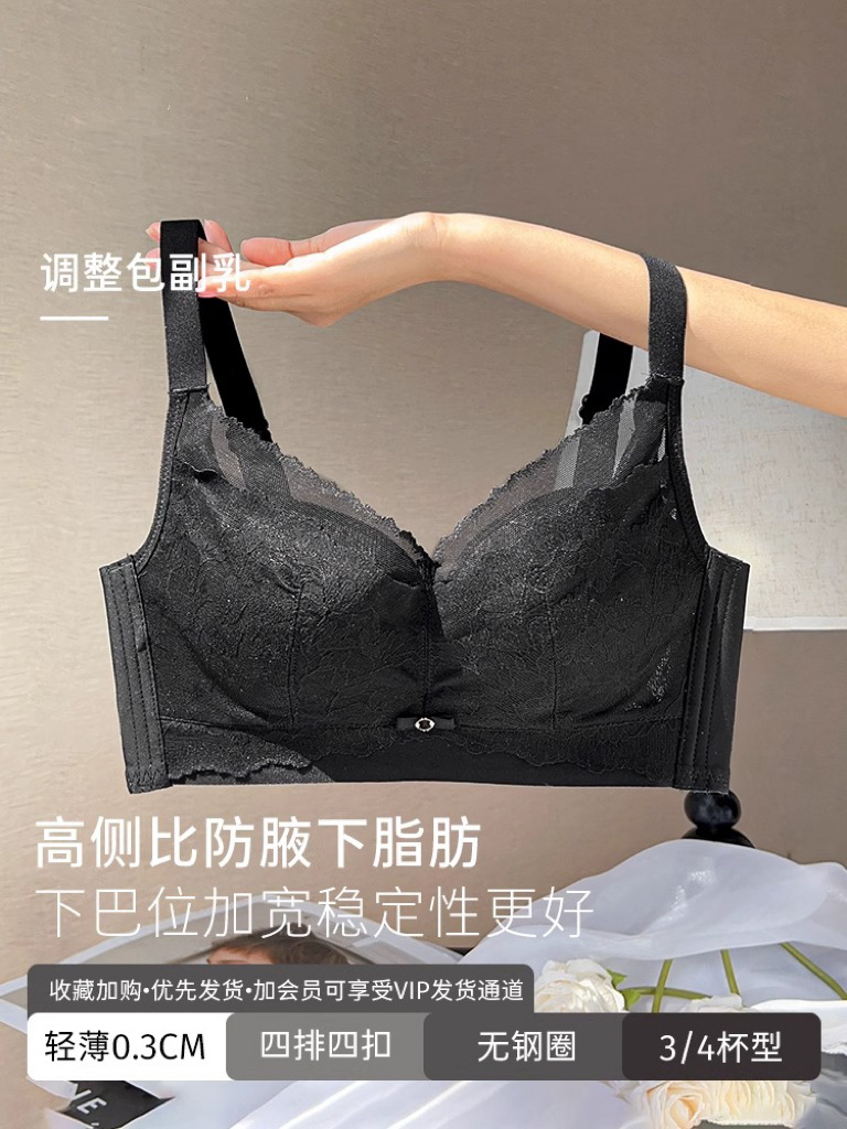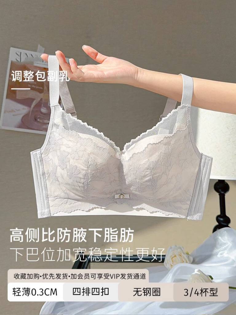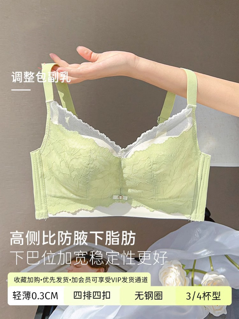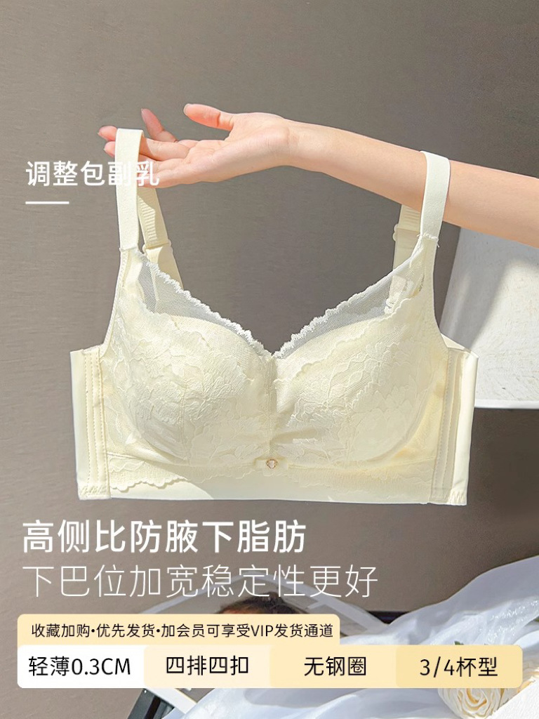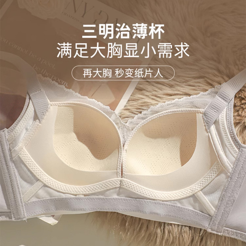 无痕内衣女大胸显小薄款无钢圈上托收副乳防下垂聚拢调整型文胸罩