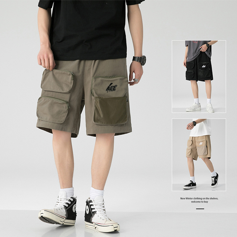 立体口袋五分短裤男款夏季原宿风ins纯色休闲百搭阔腿中裤子