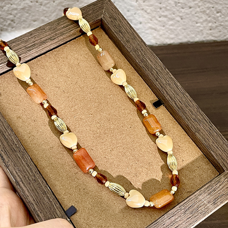 中古天然石原木色串珠项链女复古新中式小众设计民族风锁骨链配饰