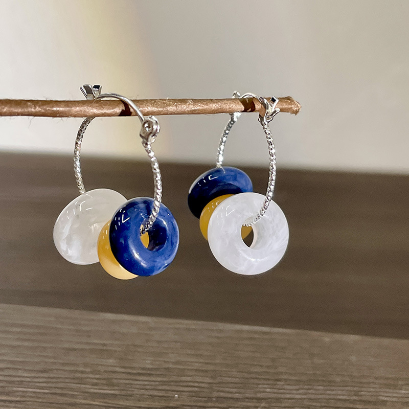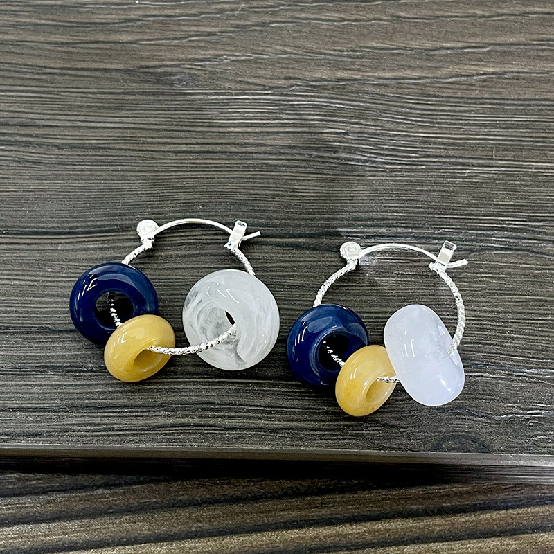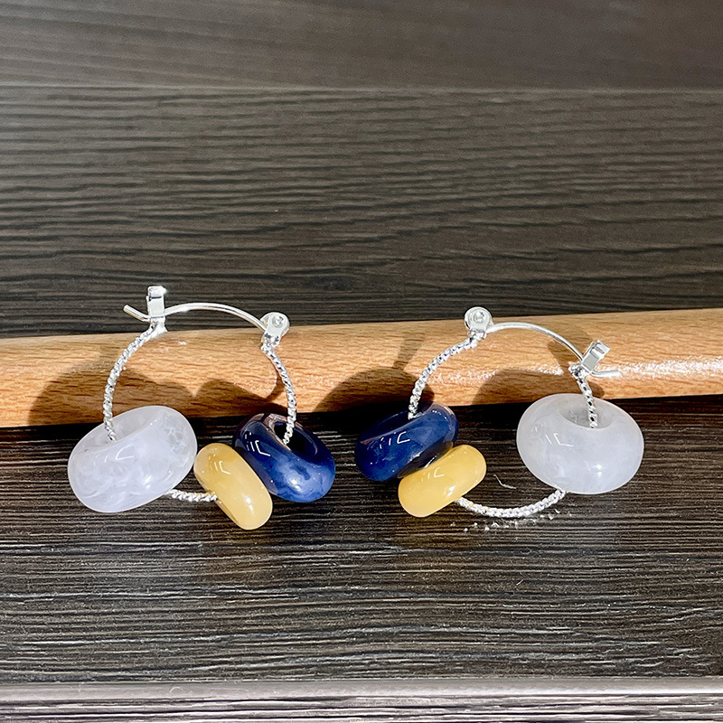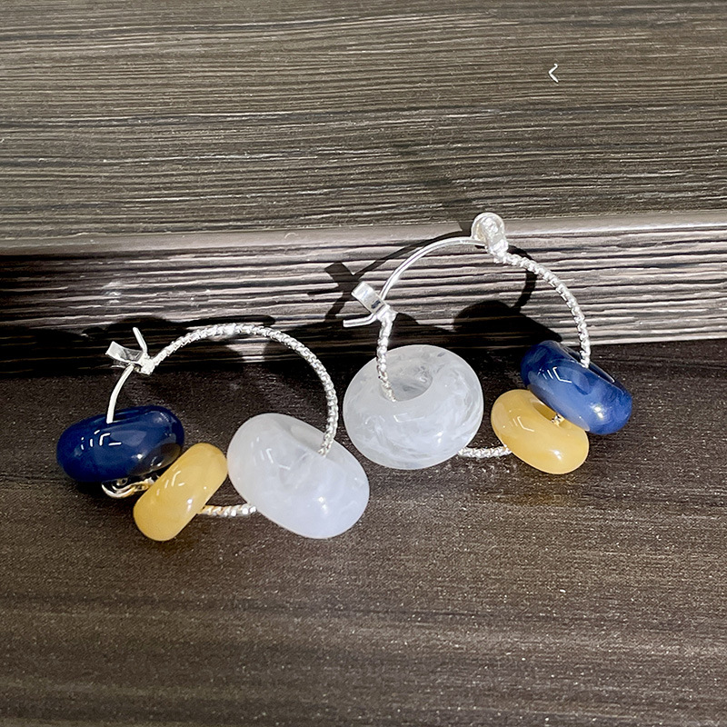 新中式复古彩色串珠耳扣新款小众设计感耳环圈圈气质耳圈个性耳饰