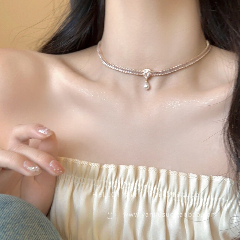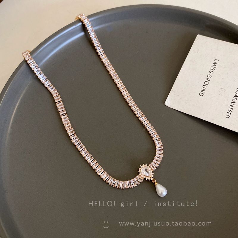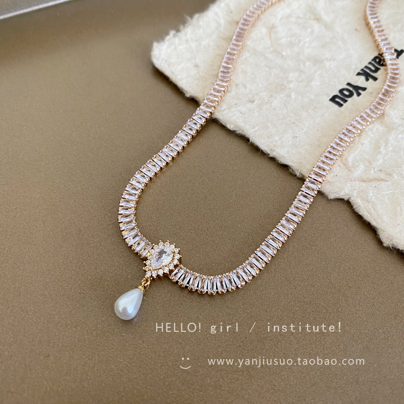 法式赫本风锆石项链轻奢小众高级设计感水滴形珍珠锁骨链网红颈链