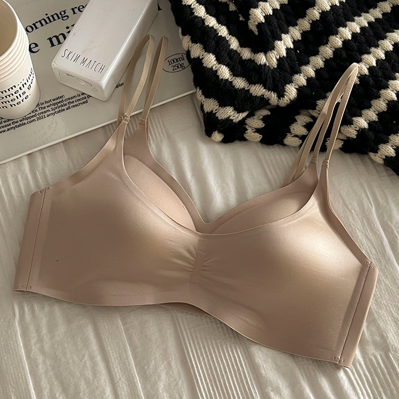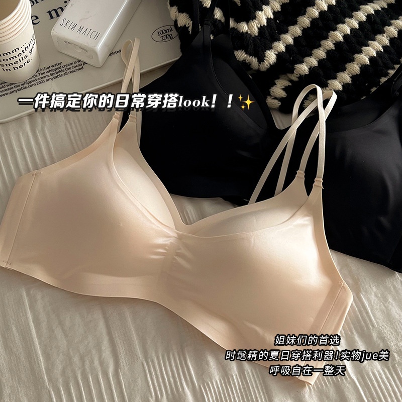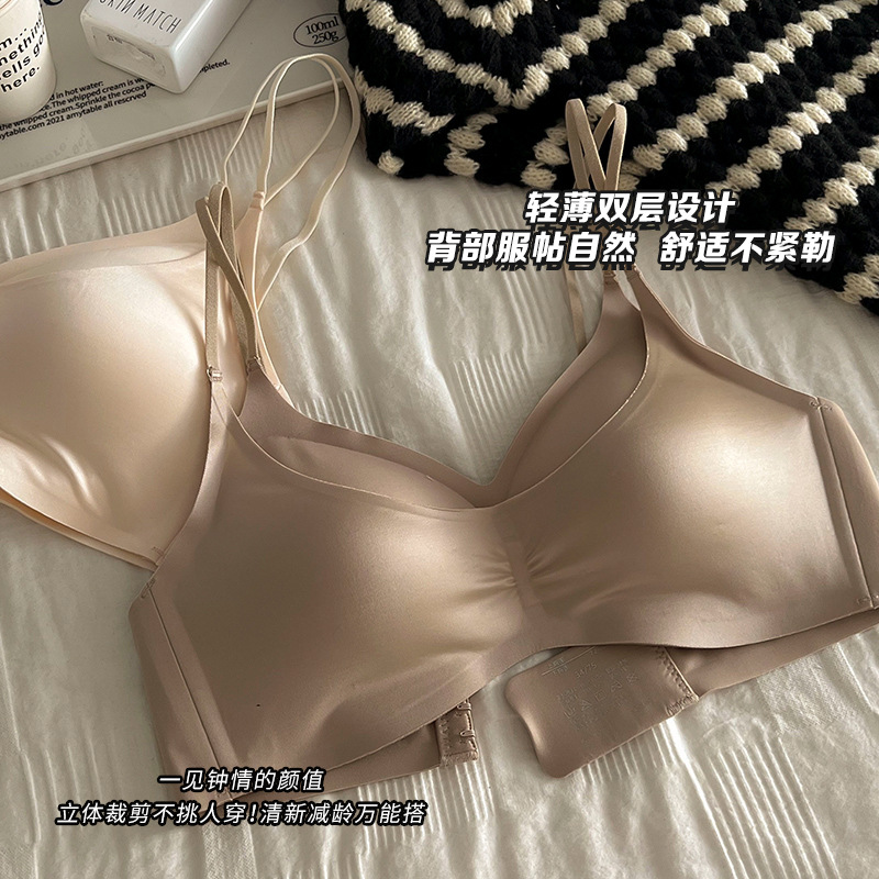 法式丝绸缎面小胸可三穿美背内衣女无钢圈收副乳防下垂文胸