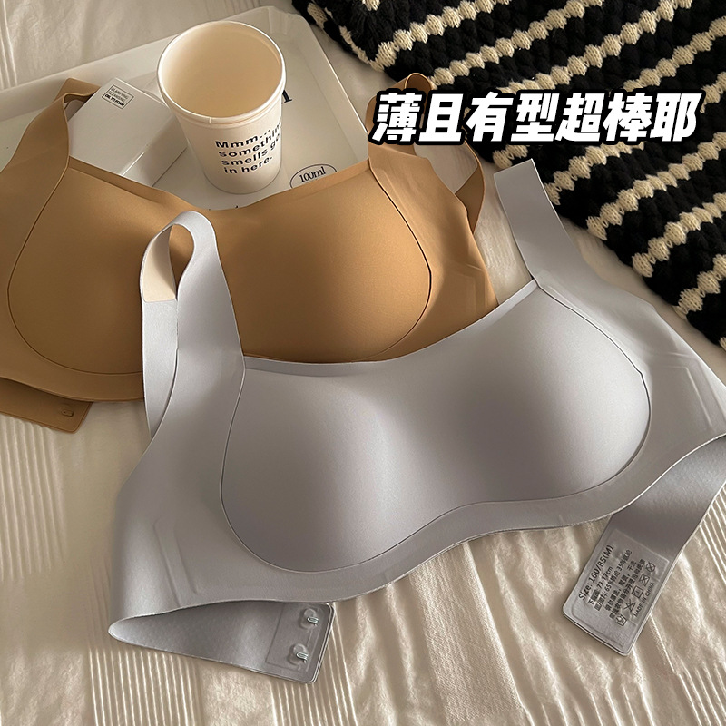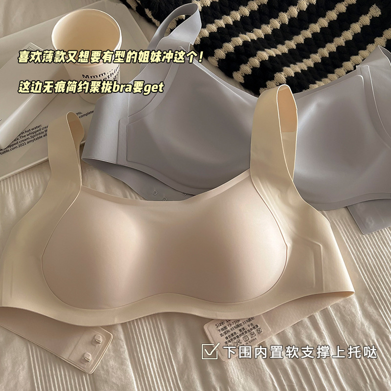 复古方领背心式bra W型夹心一体托聚拢收副乳少女内衣固定式