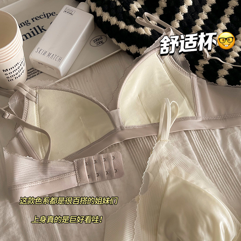 法式三角杯女小胸上托聚拢浪漫高级感轻薄服帖自然胸型文胸