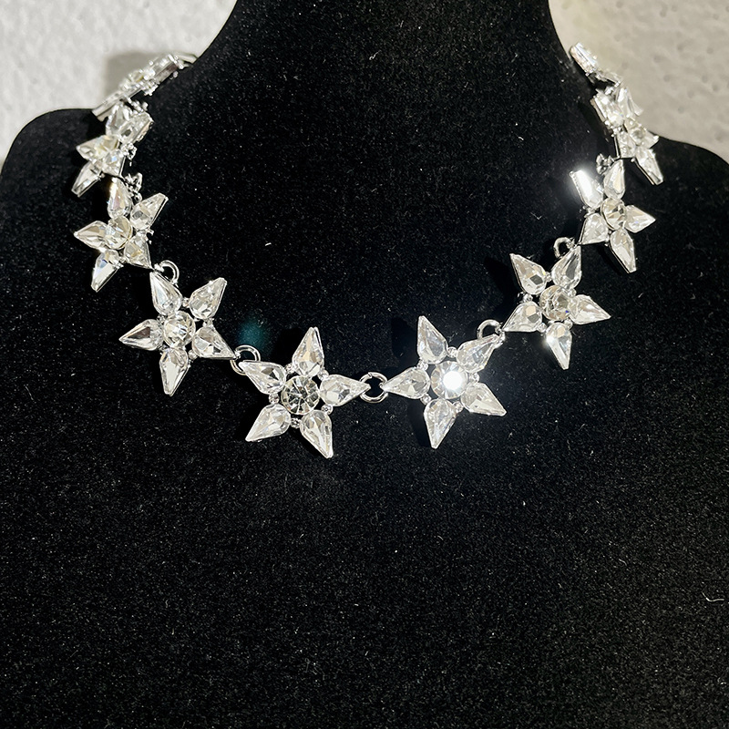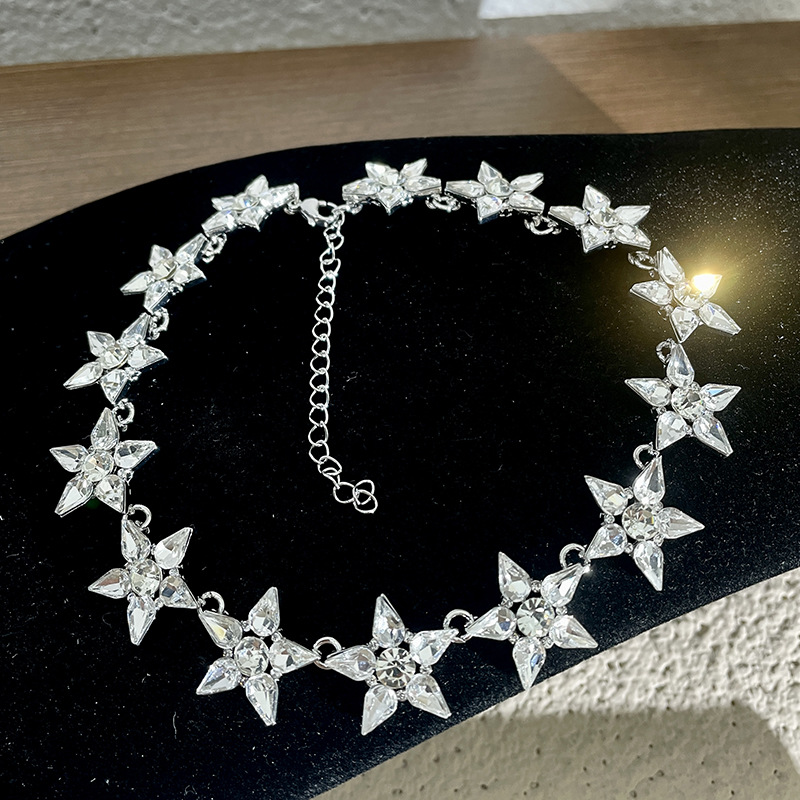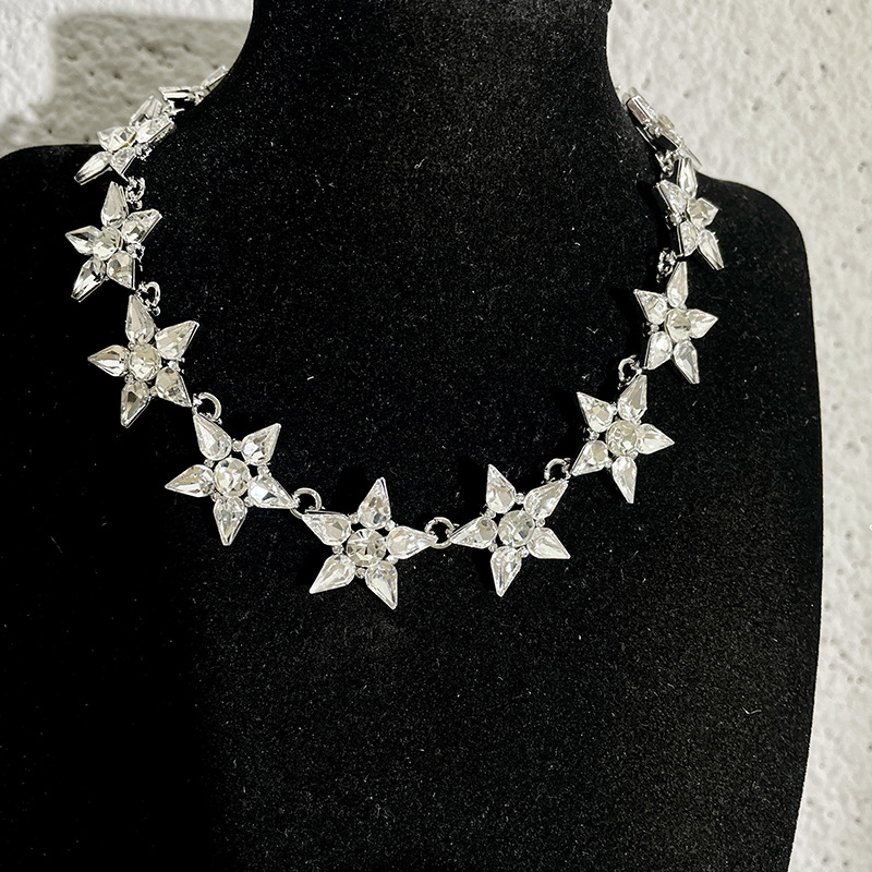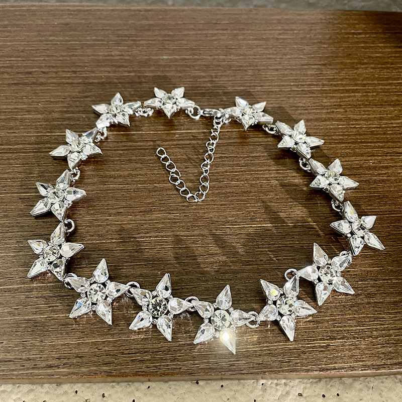 满钻五角星拼接项链小众颈链千禧风银色满锆星星锁骨链潮