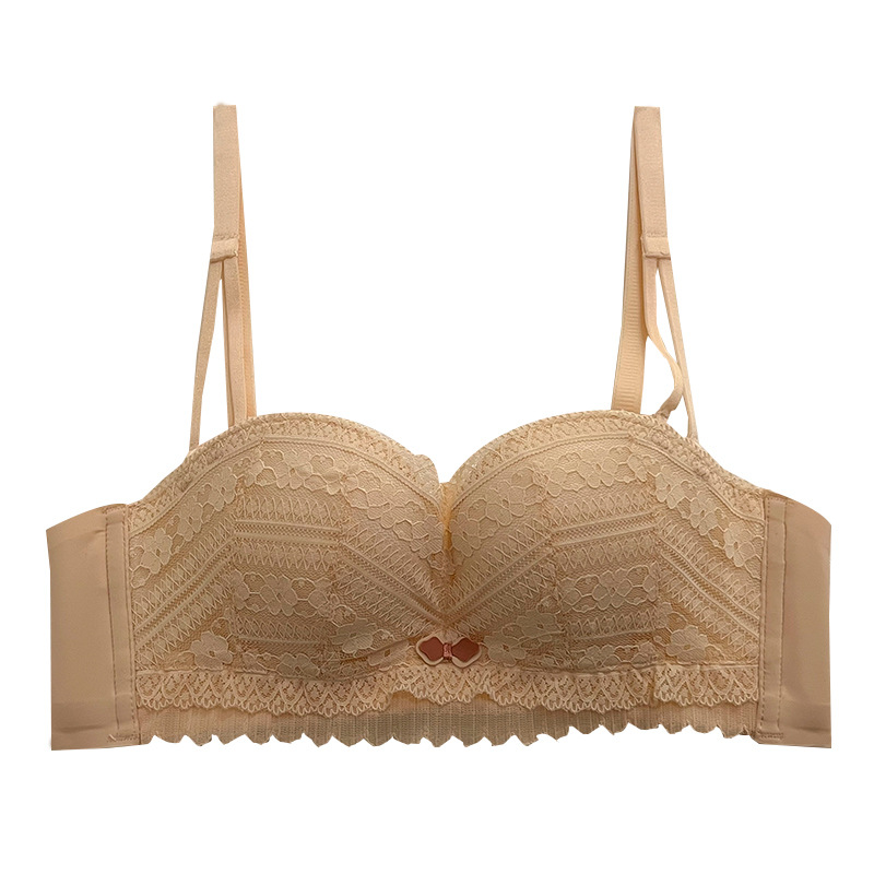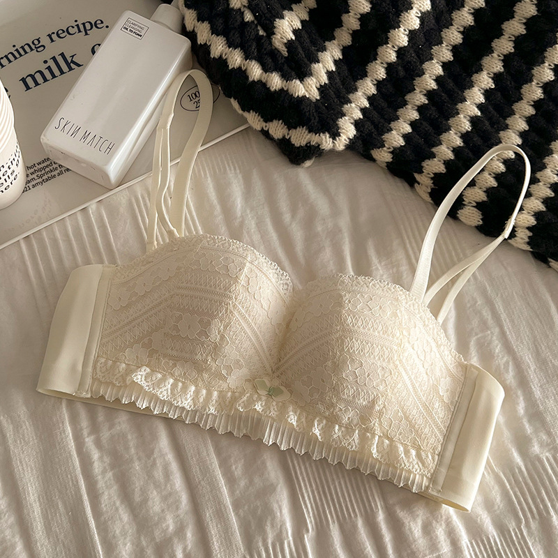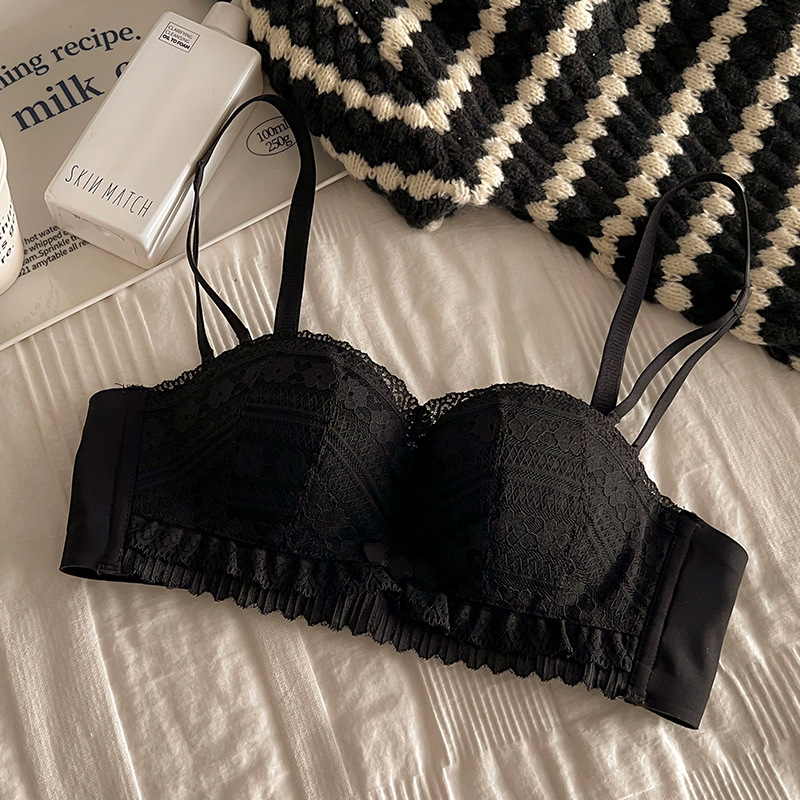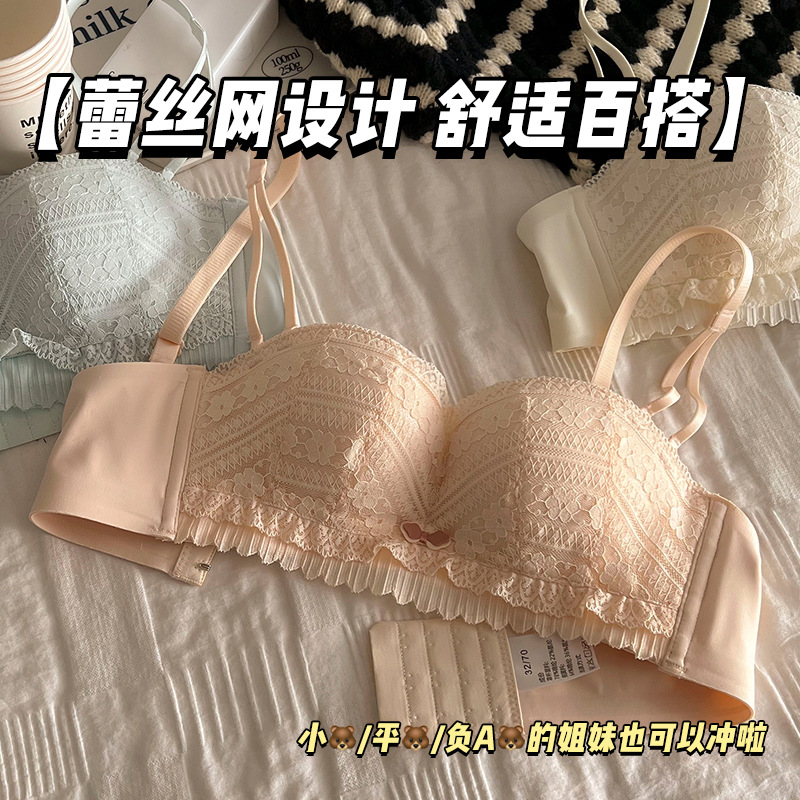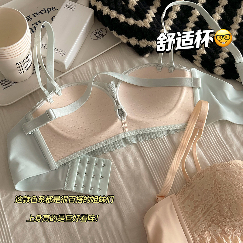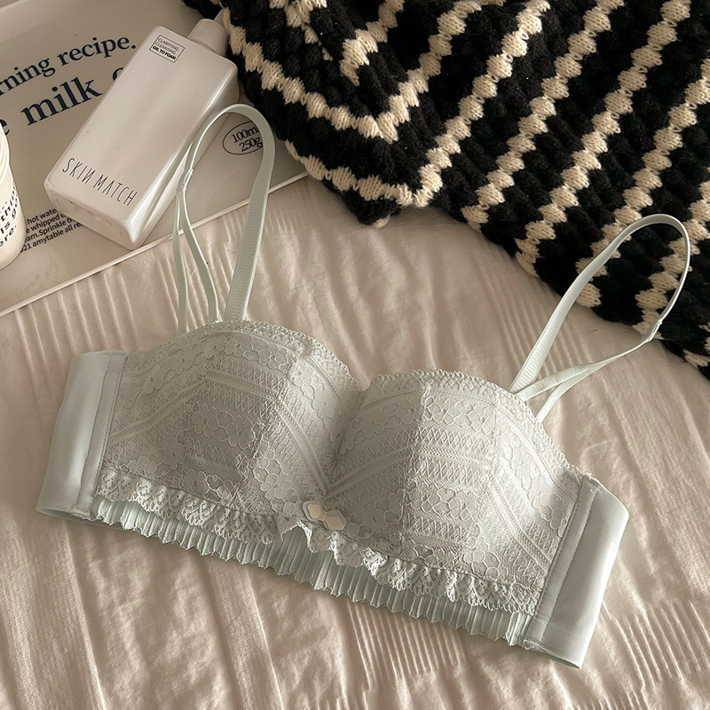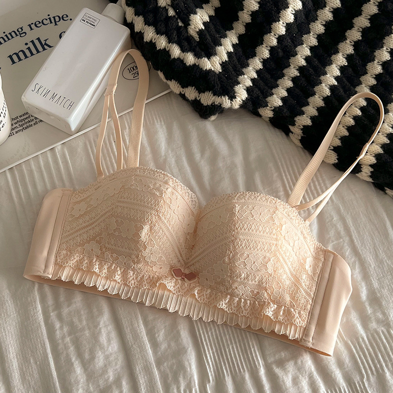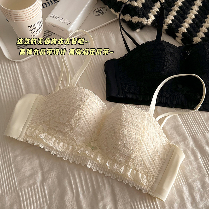 少女感蕾丝抹胸bra 提拉聚拢透气侧收软支撑内衣可拆卸肩带