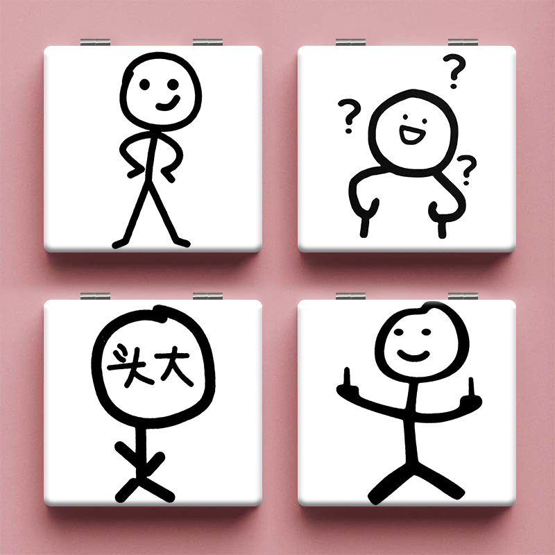 搞怪表情包小镜子学生随身带化妆镜宿舍卧室折叠镜子迷你双面镜子