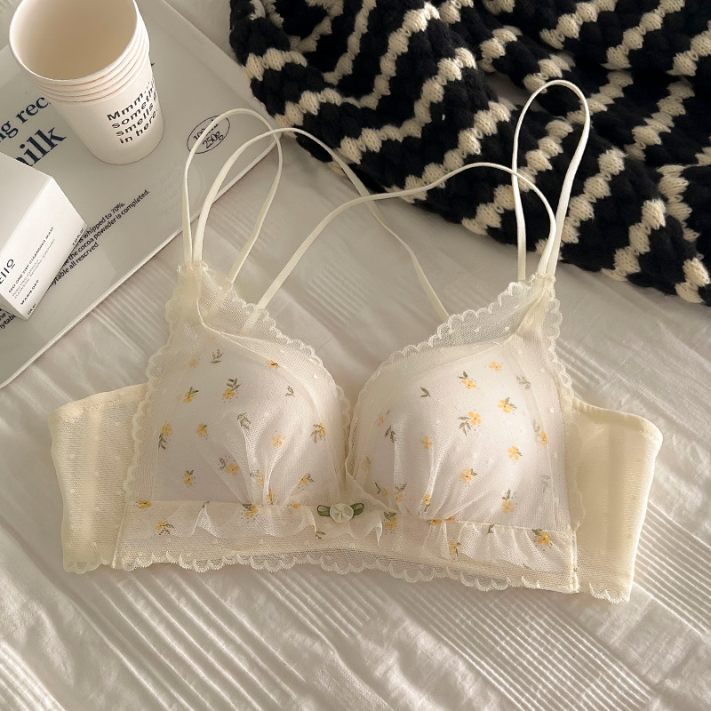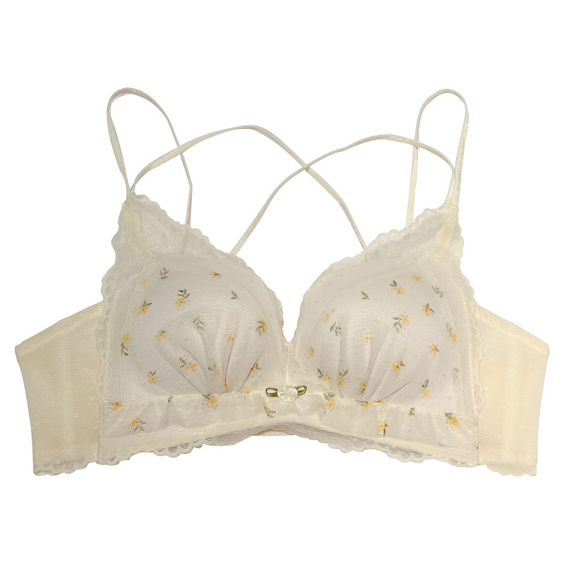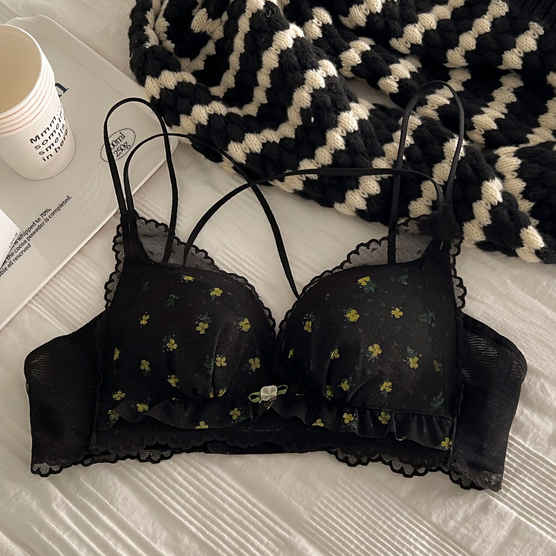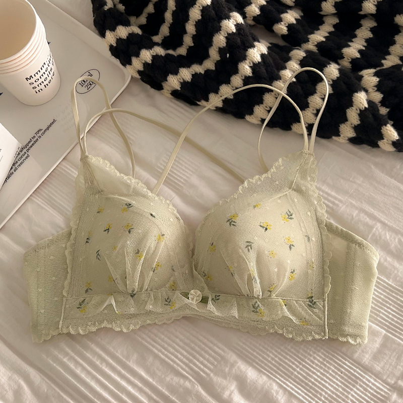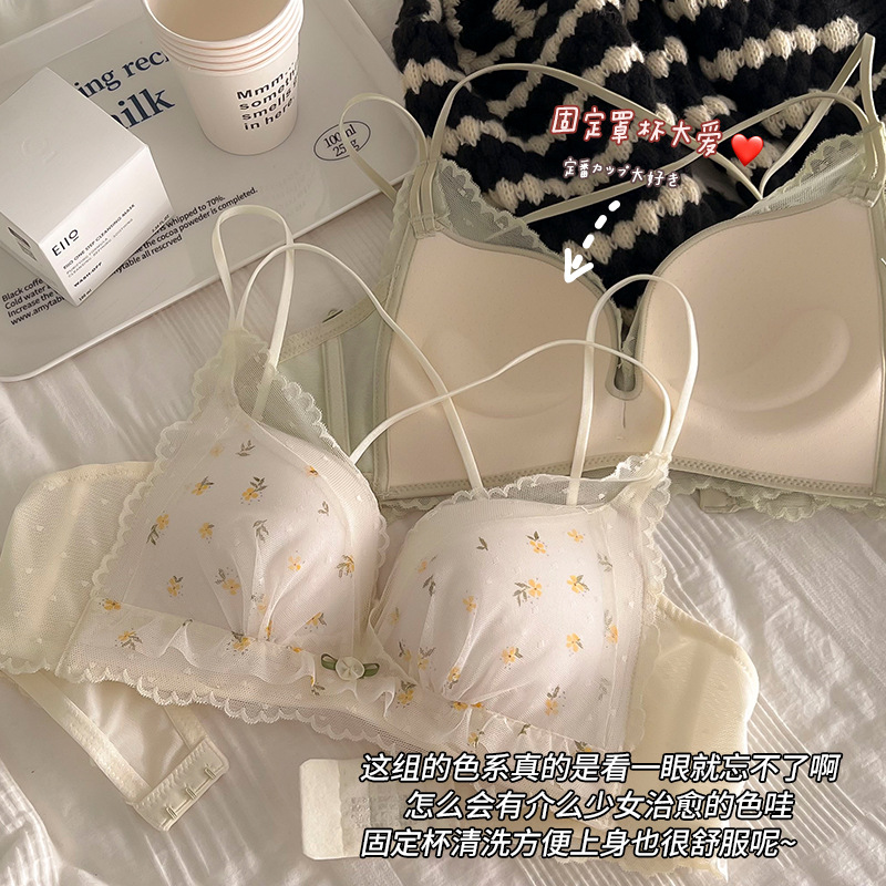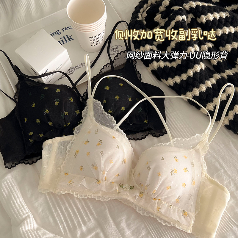 小碎花法式三角杯大学女生小胸聚拢薄杯内衣蕾丝美背文胸