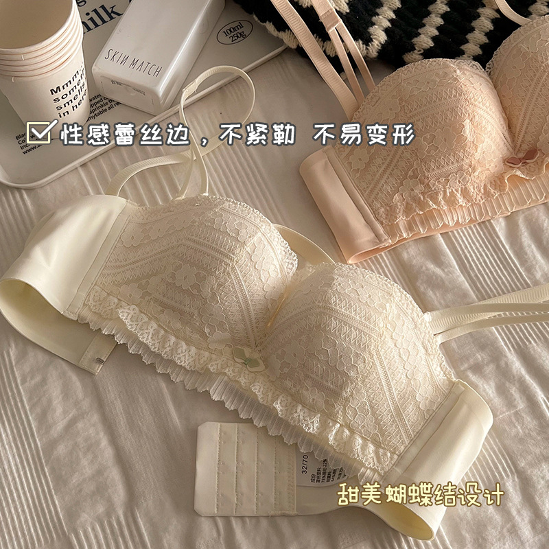 少女感蕾丝抹胸bra 提拉聚拢透气侧收软支撑内衣可拆卸肩带