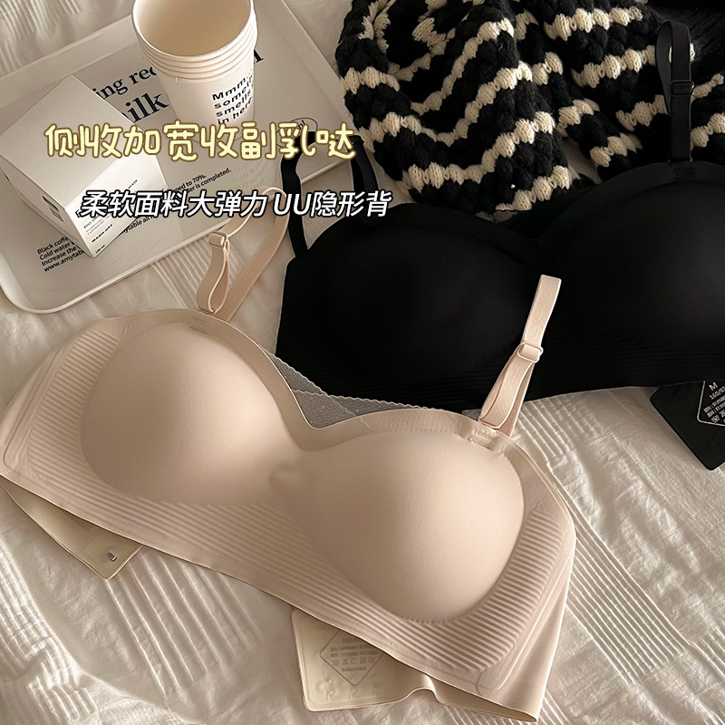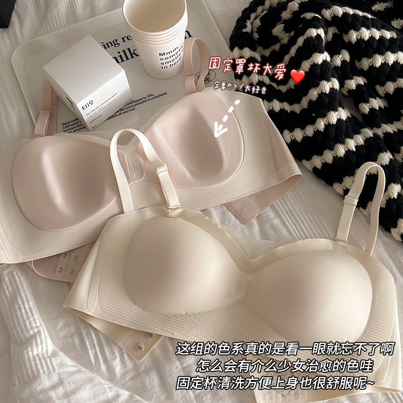 简约无痕固定杯内衣女黑科技防滑无肩带聚拢承托舒适收副乳