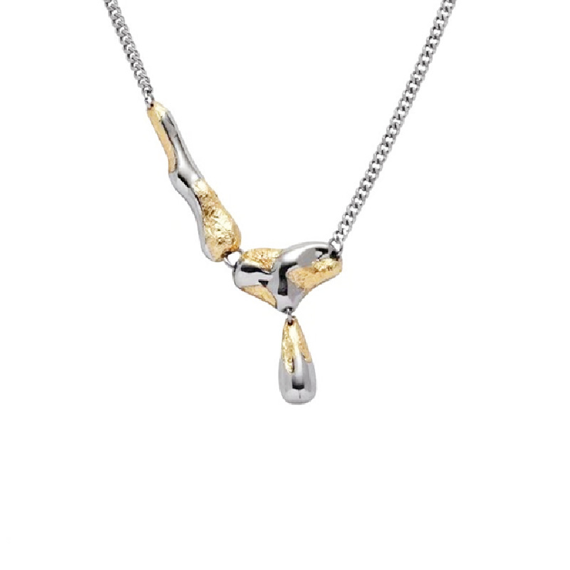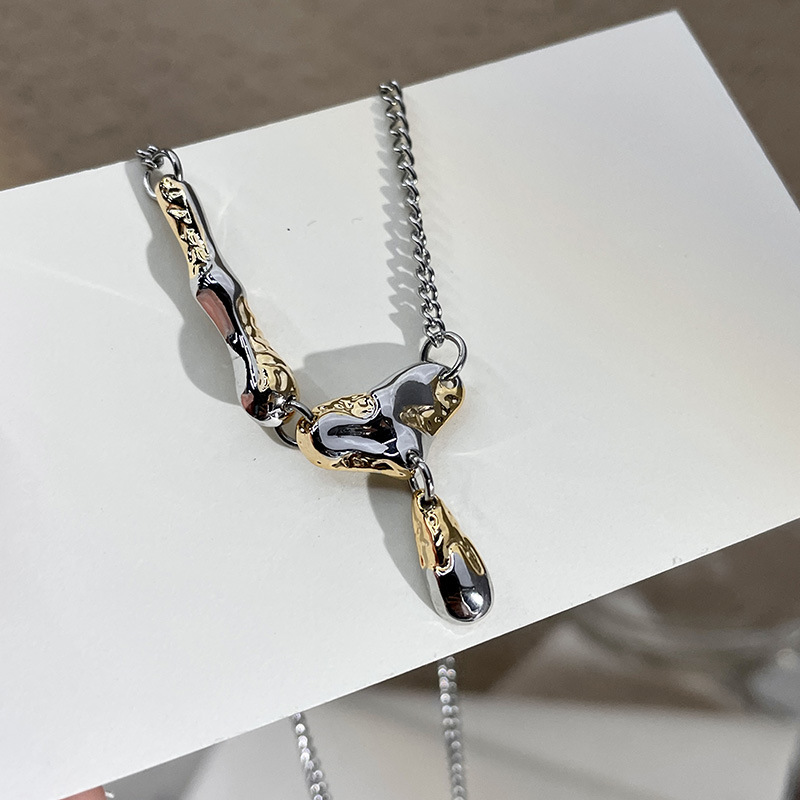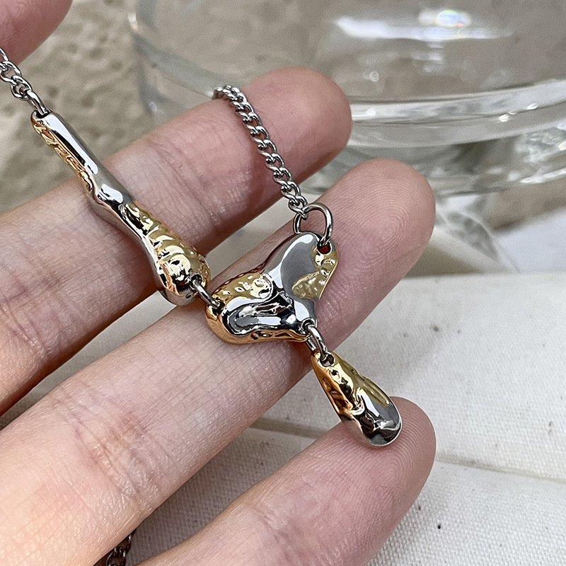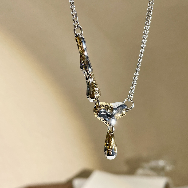金箔流体设计高级感项链辣妹甜酷轻奢小众中性金银拼色水滴锁骨链