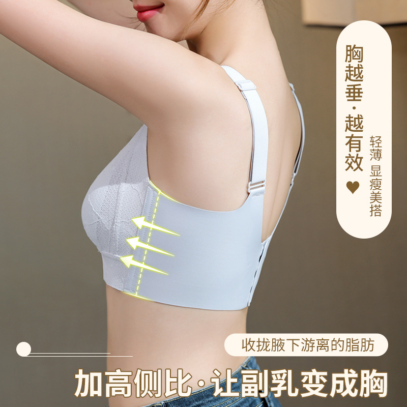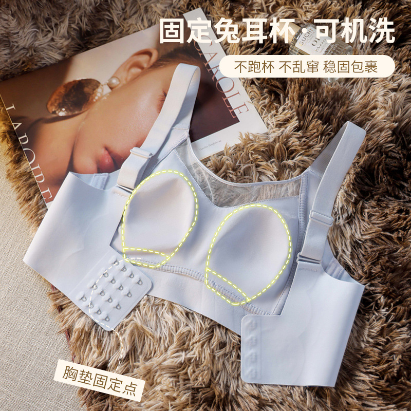 固定杯大胸显小文胸罩薄款聚拢防下垂无钢圈抹胸兔耳朵大码内衣女