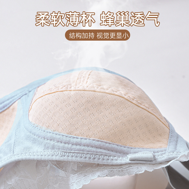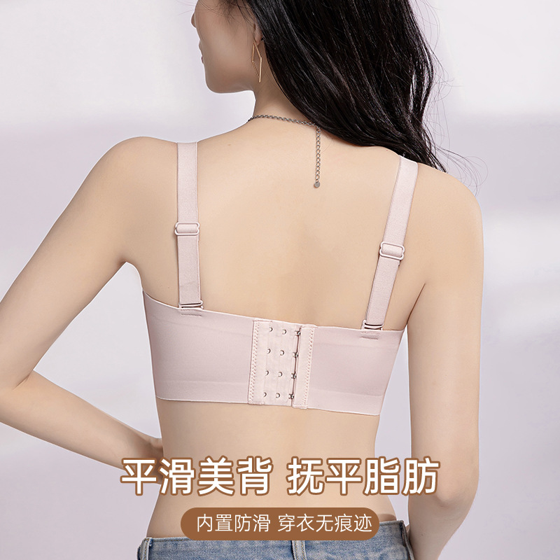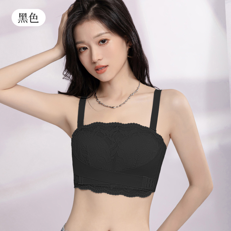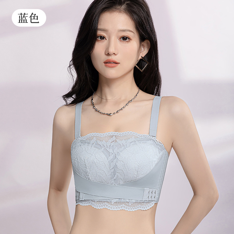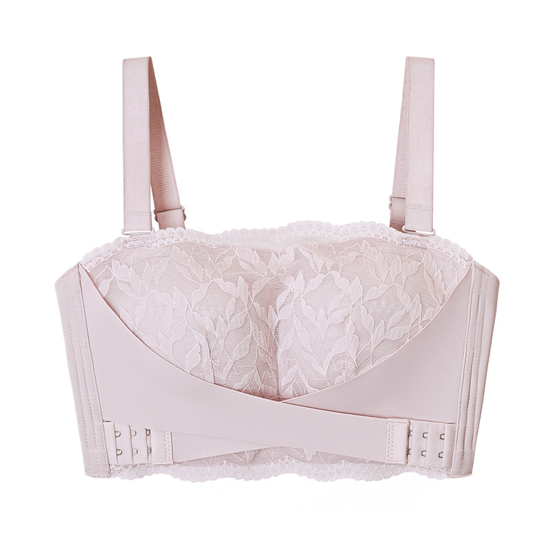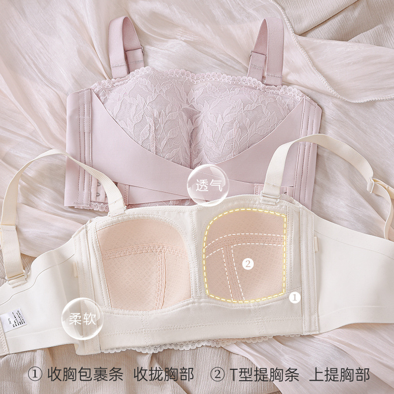 大胸显小无肩带内衣女裹胸蕾丝防下垂无钢圈收副乳聚拢薄款文胸罩