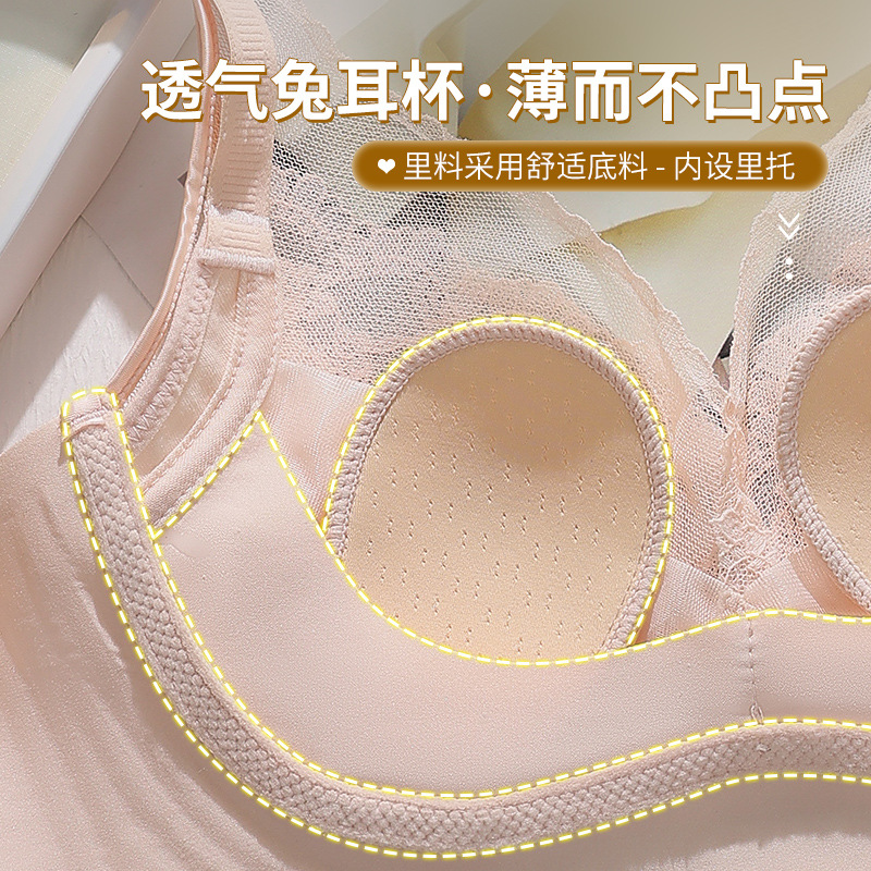 兔耳朵内衣女薄款大胸显小胸收副乳防下垂文胸无钢圈聚拢胸罩超薄