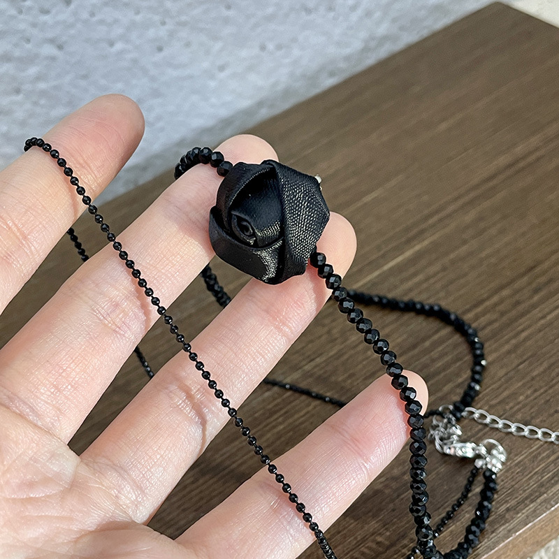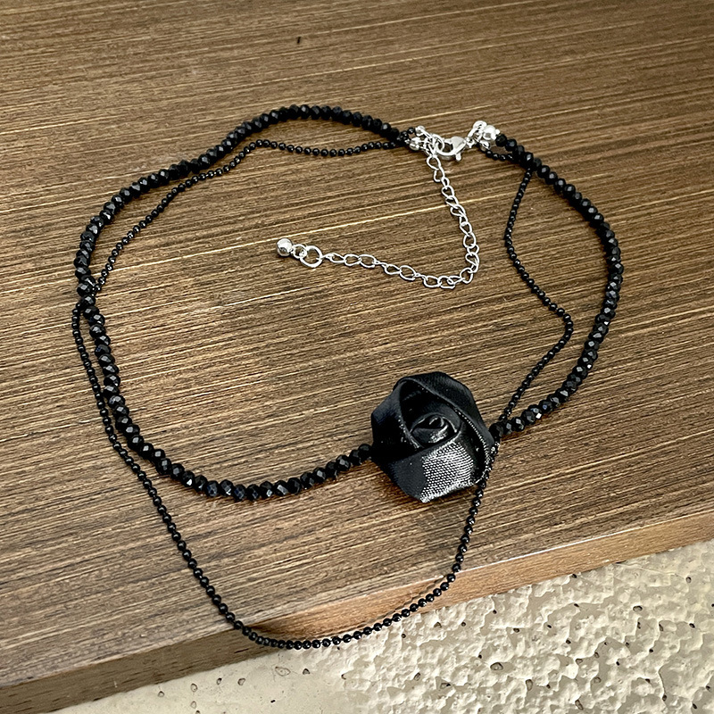 黑色玫瑰花双层水晶项链