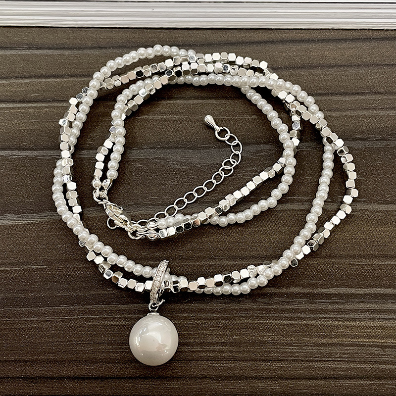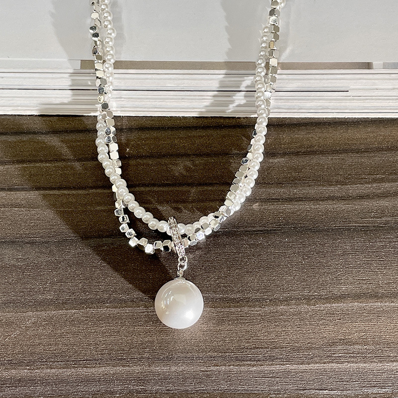 双层珍珠碎银叠戴项链