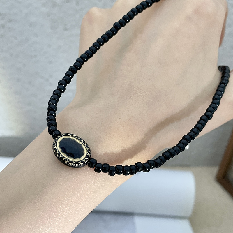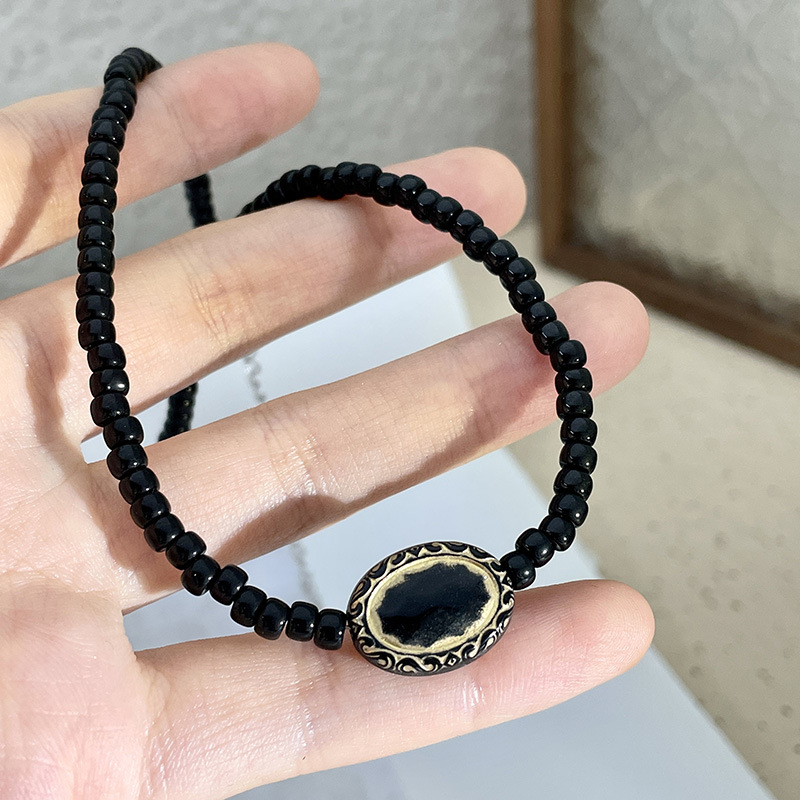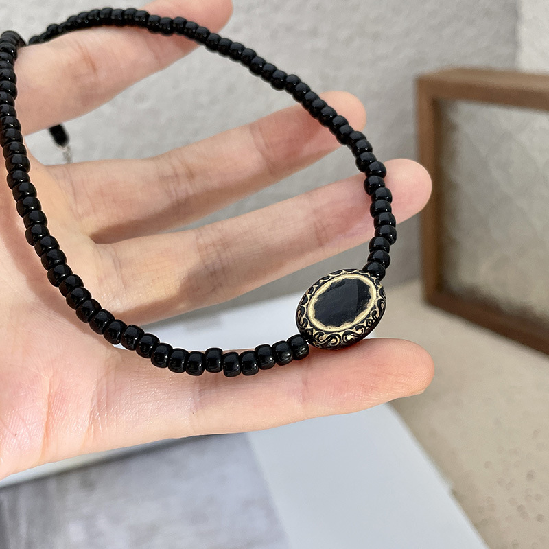 复古vintage百搭巴洛克黑金串珠锁骨链小众民族项链女