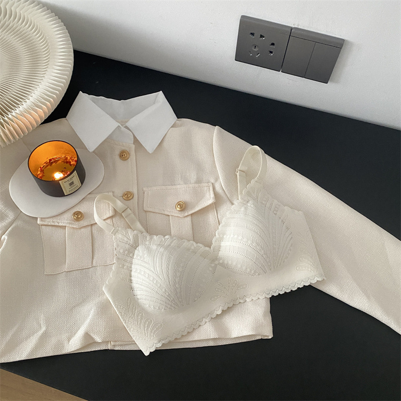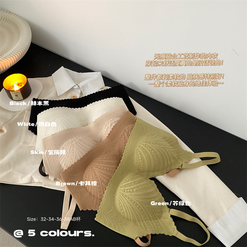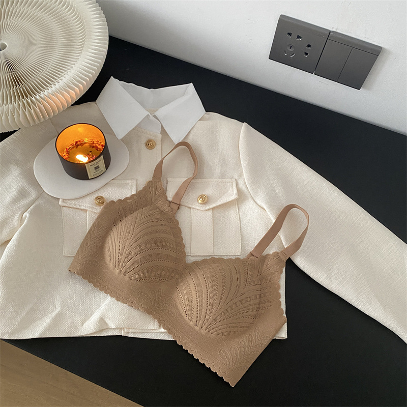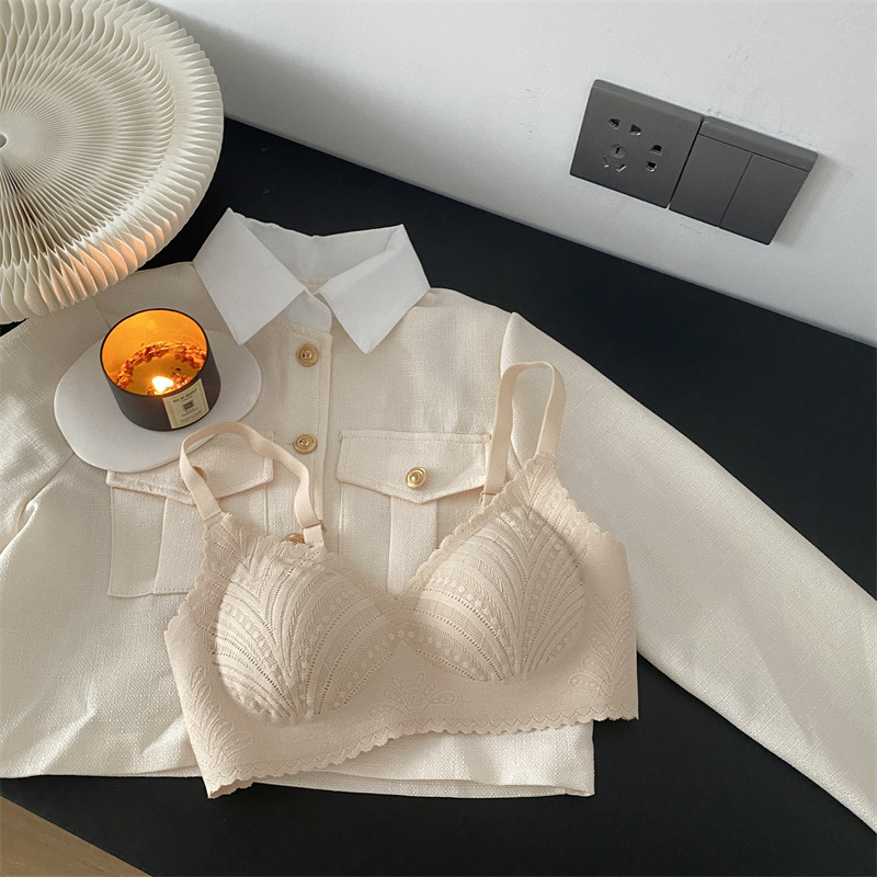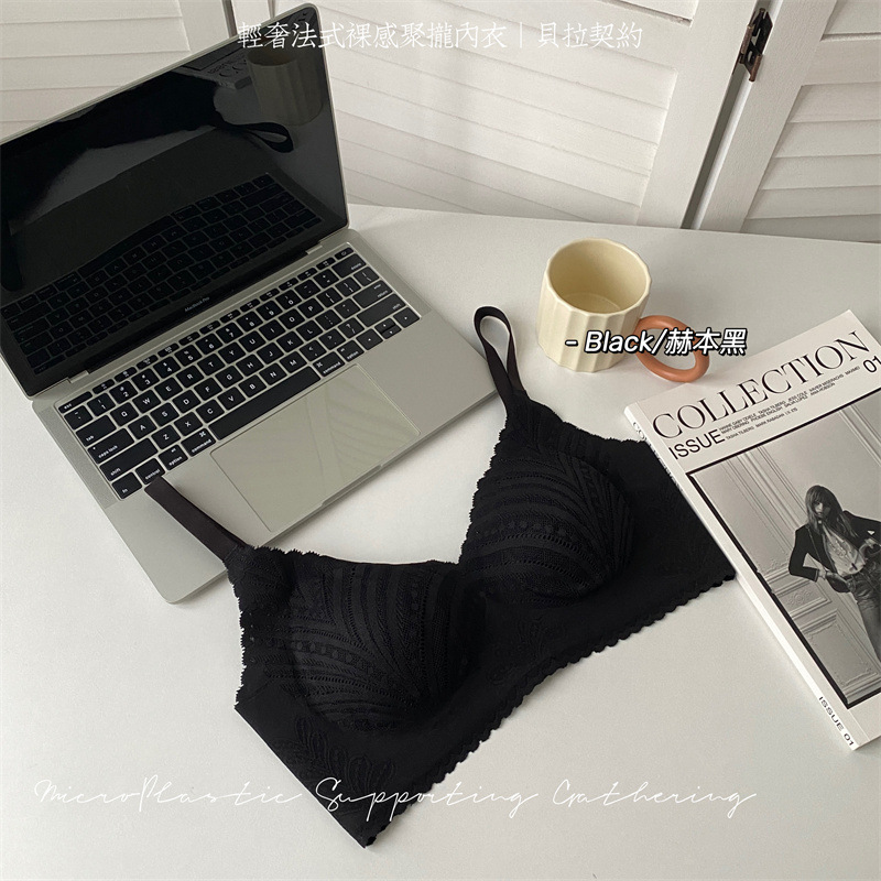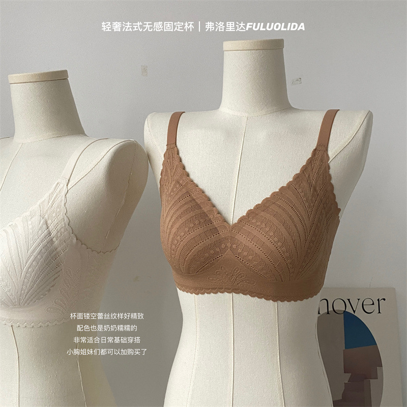 春夏薄款固定杯内衣女法式蕾丝无痕无钢圈聚拢收副乳大胸显小文胸