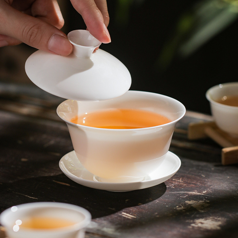 薄胎盖碗单个高档陶瓷功夫茶具套装骨瓷茶杯白瓷带盖三才大号