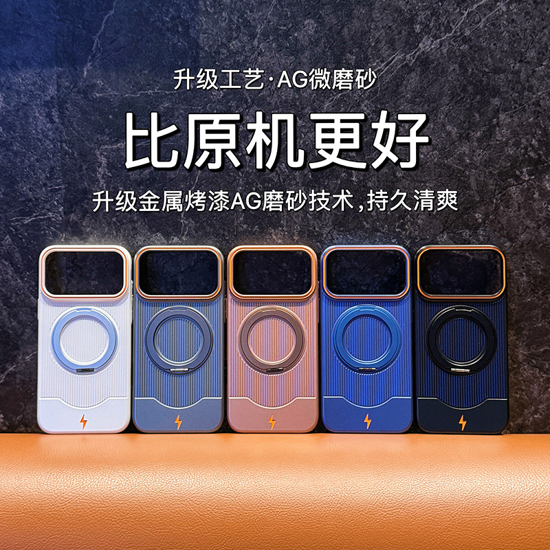适用iPhone17手机壳瓦楞360旋转磁吸支架苹果16ProMax磨砂保护套