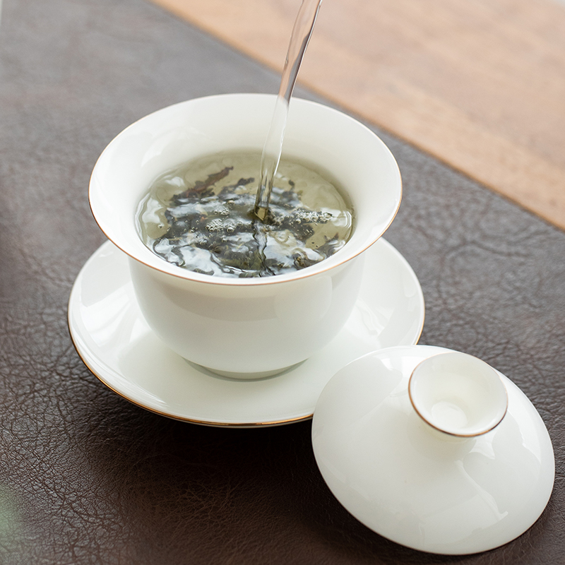 高端羊脂玉白瓷茶碗大号单个家用薄胎功夫三才纯白陶瓷盖碗