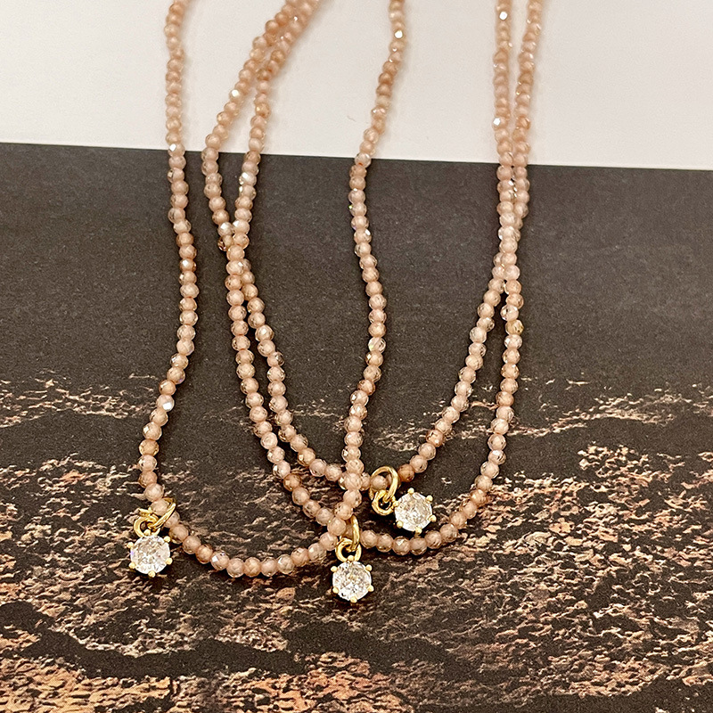 香槟色水晶串珠锆石项链