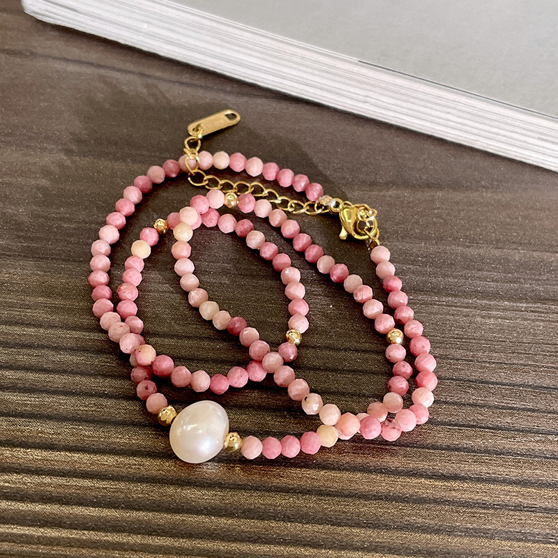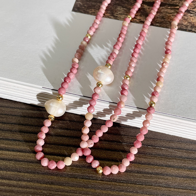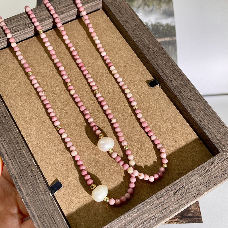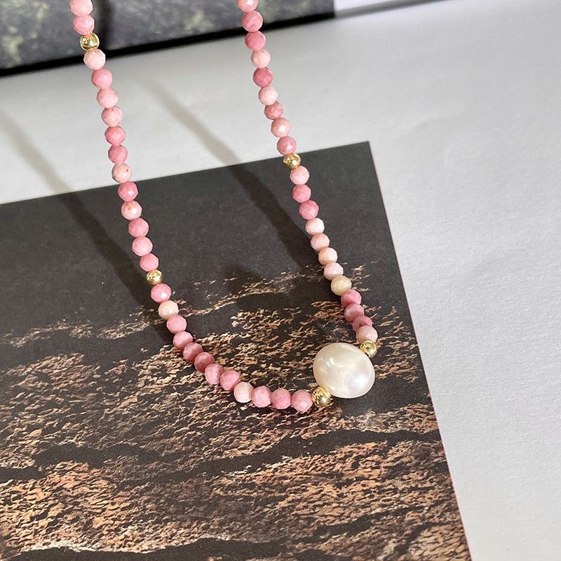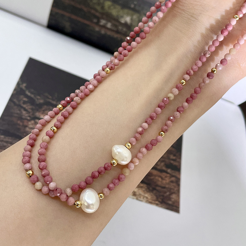 天然石红纹水晶项链轻奢小众淡水珍珠锁骨链女设计感气质颈链配饰