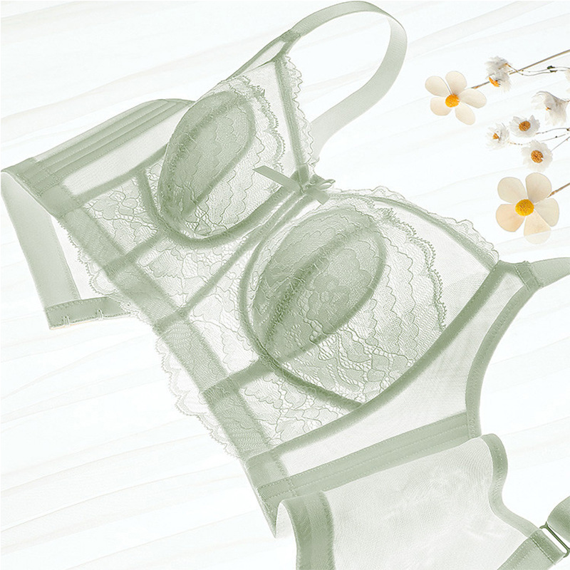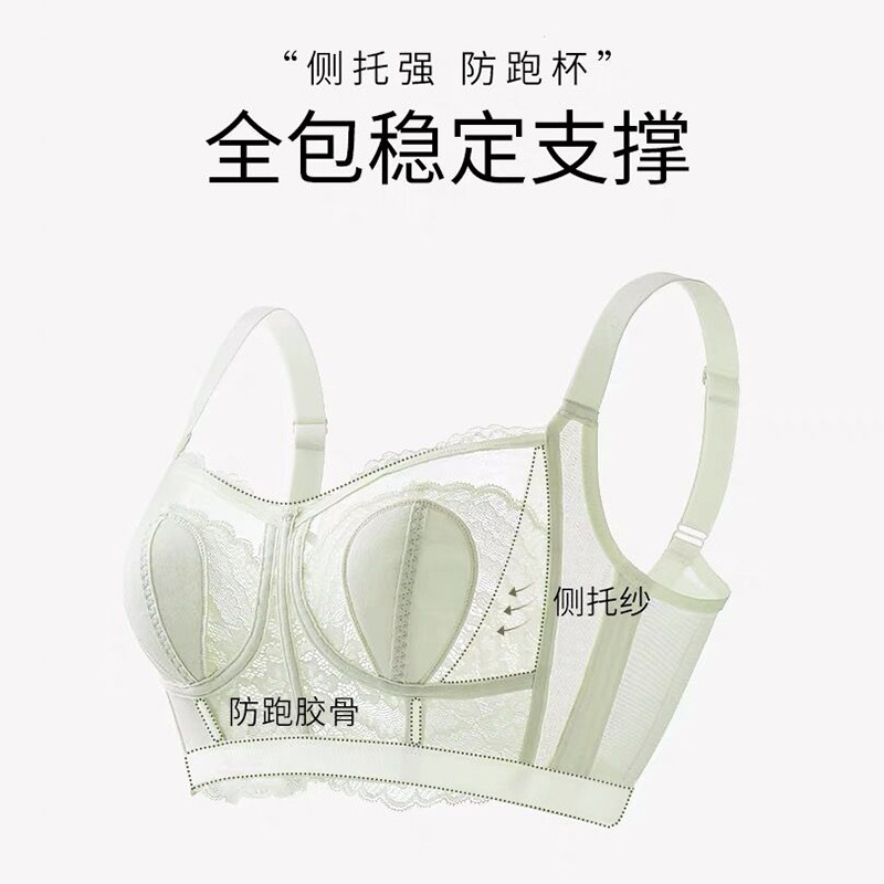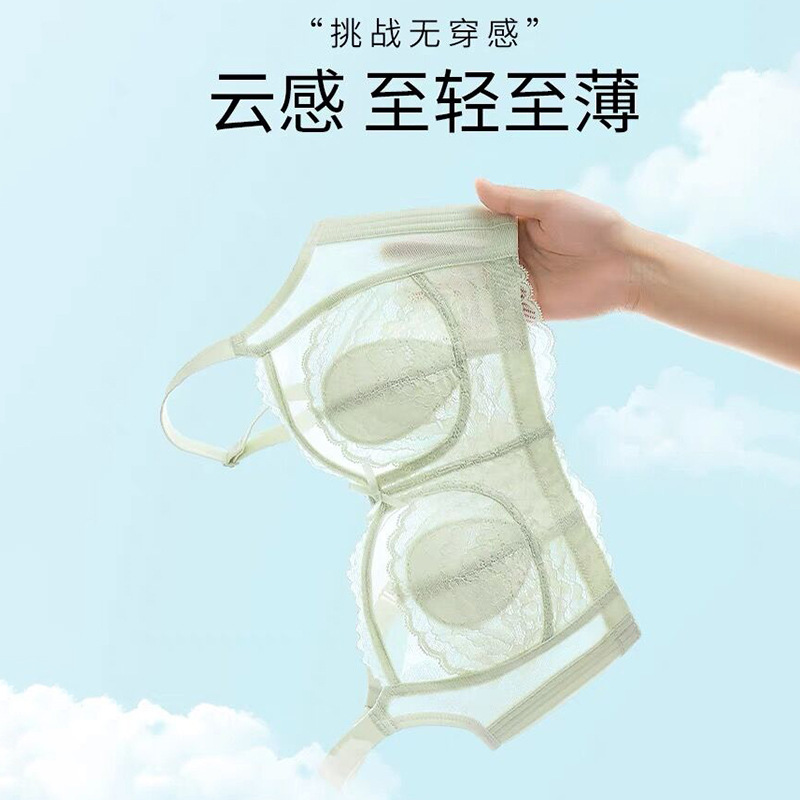 法式蕾丝兔耳朵内衣女全罩杯薄款水晶杯文胸无钢圈收副乳胸罩