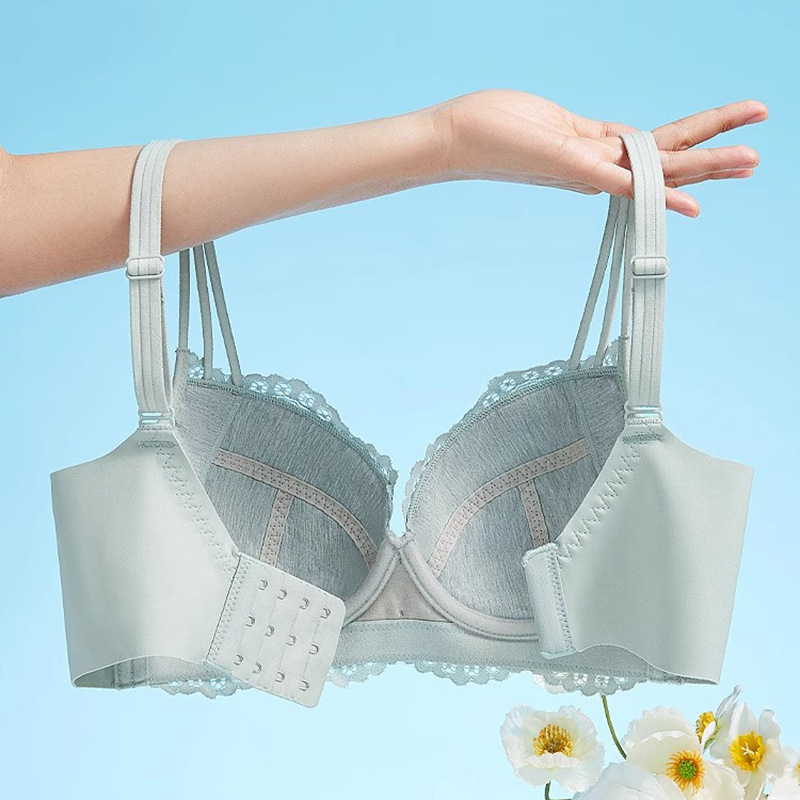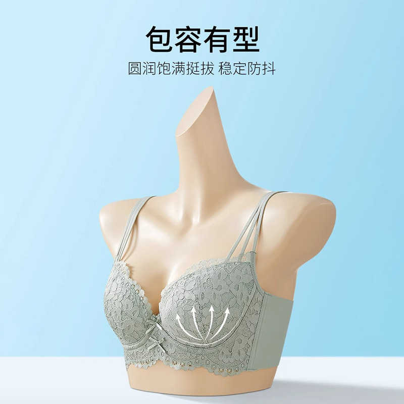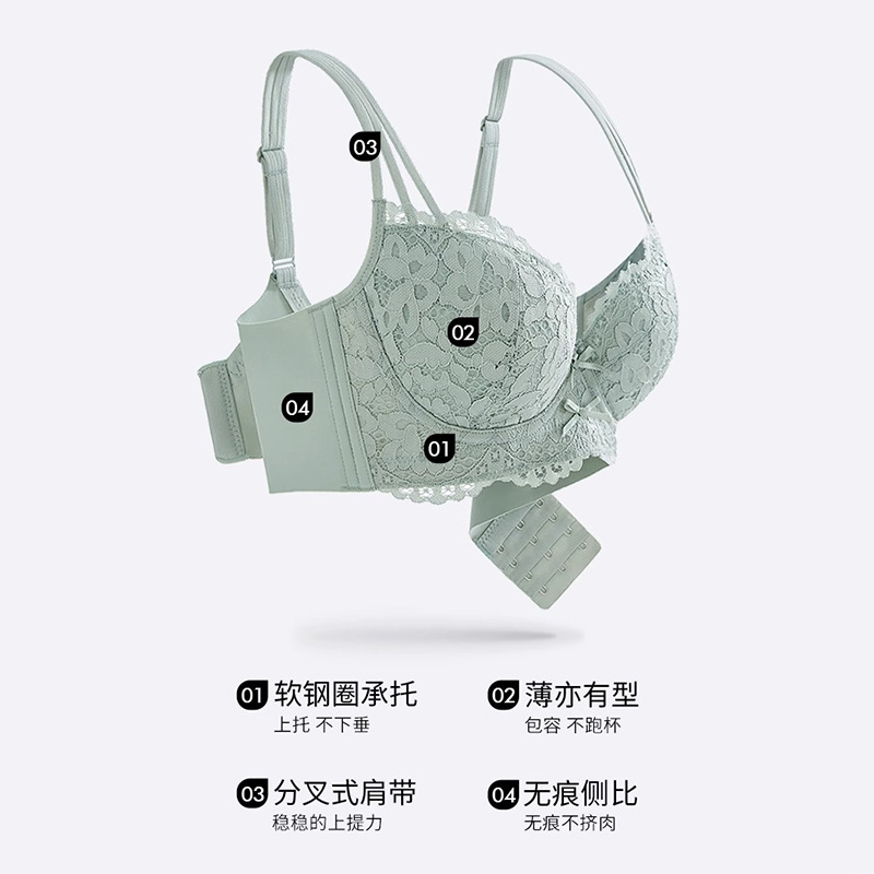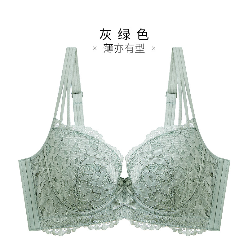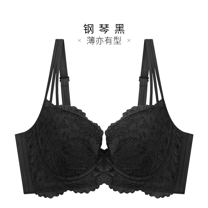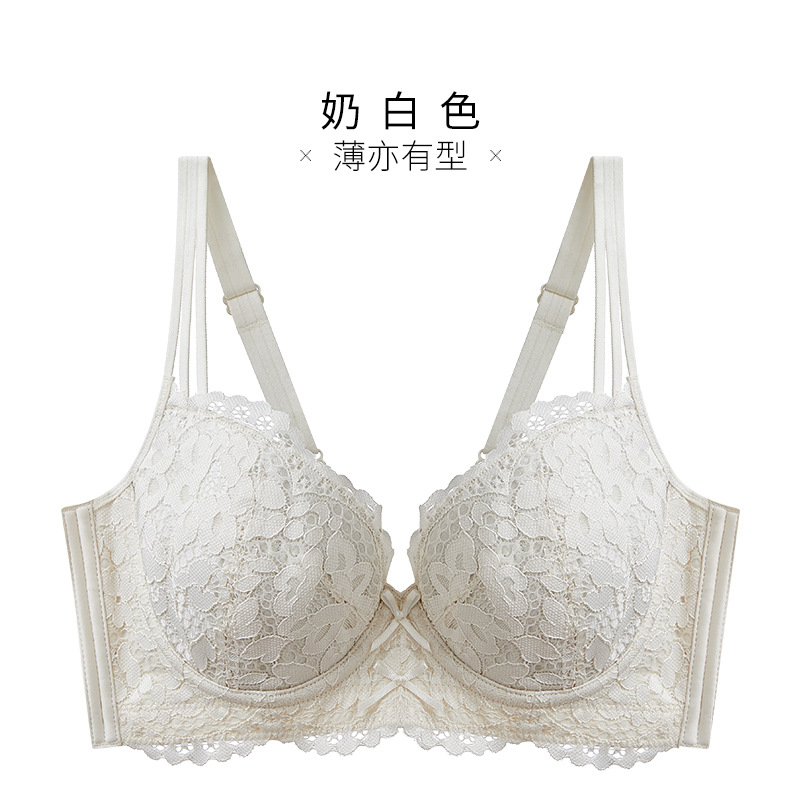 内衣女薄款大胸显小蕾丝软钢圈防下垂聚拢收副乳调整胸型挺拔文胸