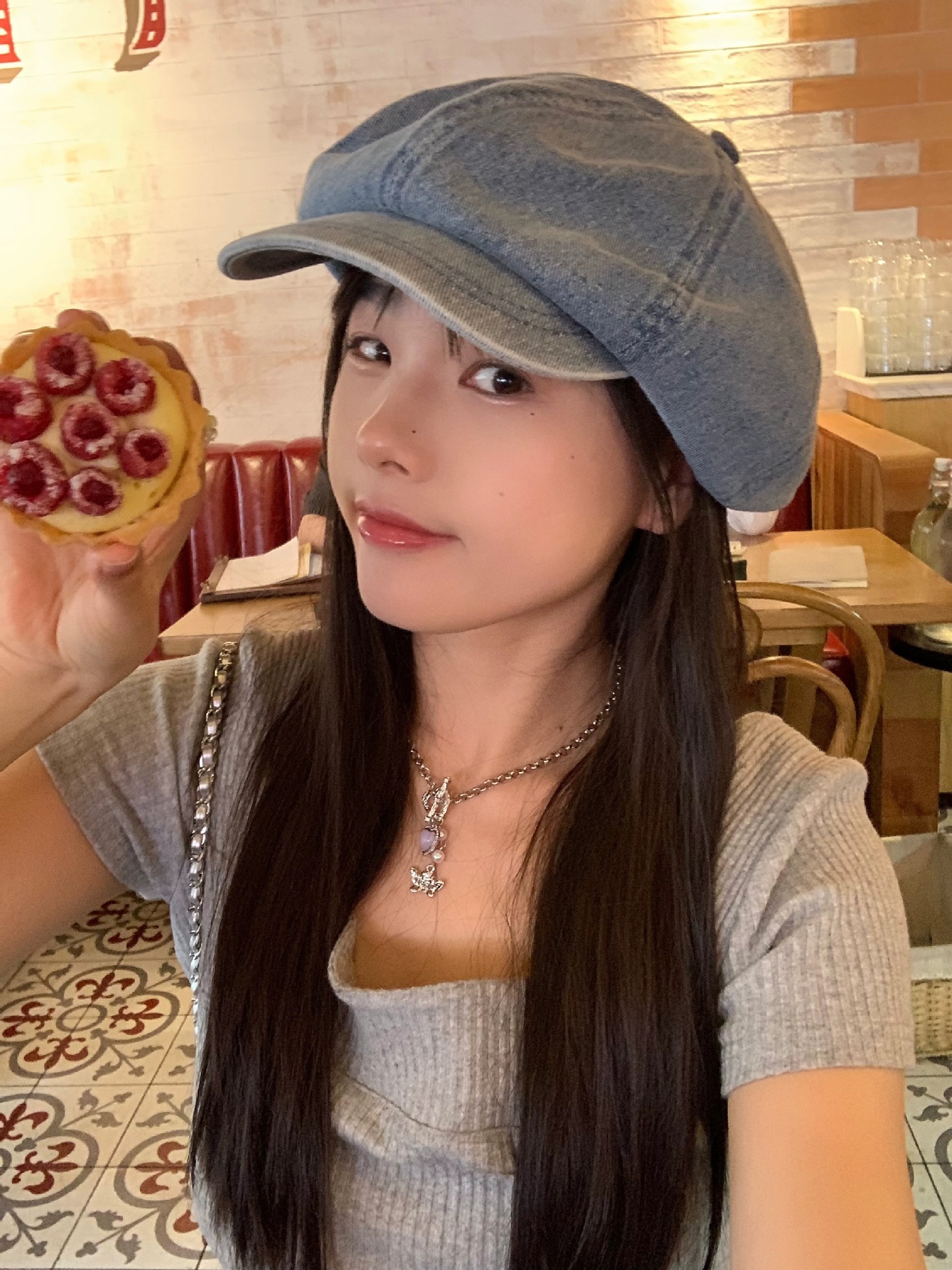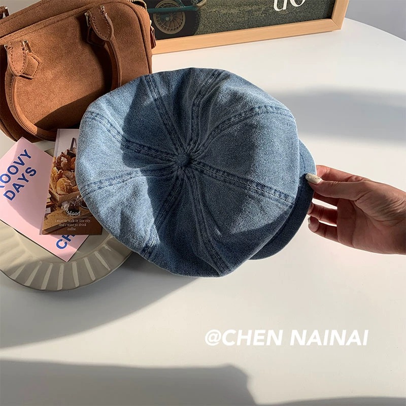 韩版复古牛仔大头围贝雷帽女显脸小百搭画家云朵帽文艺八角帽子潮