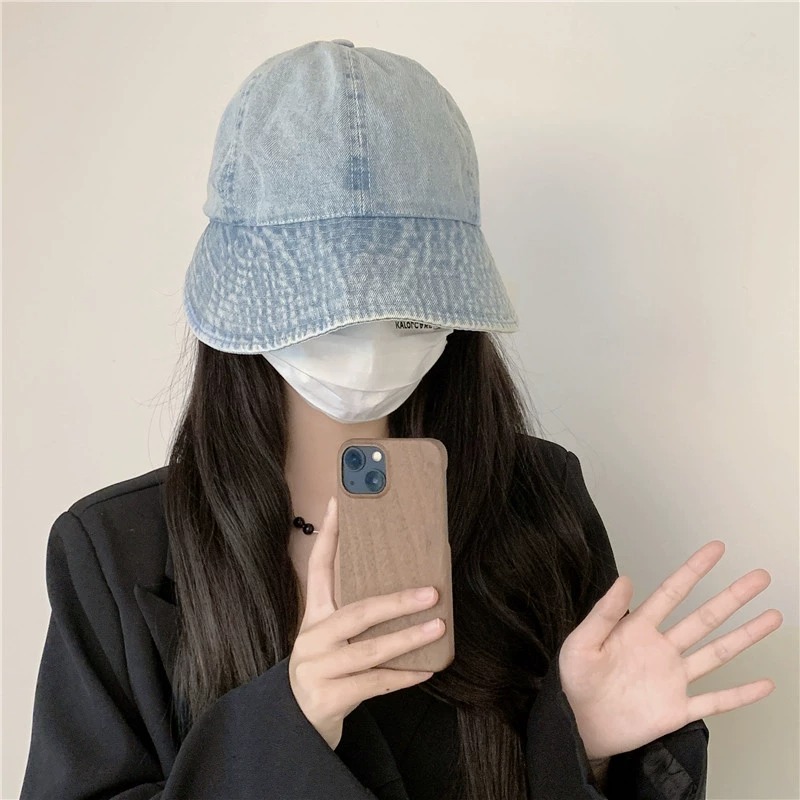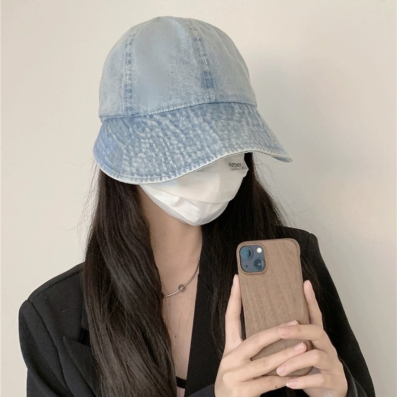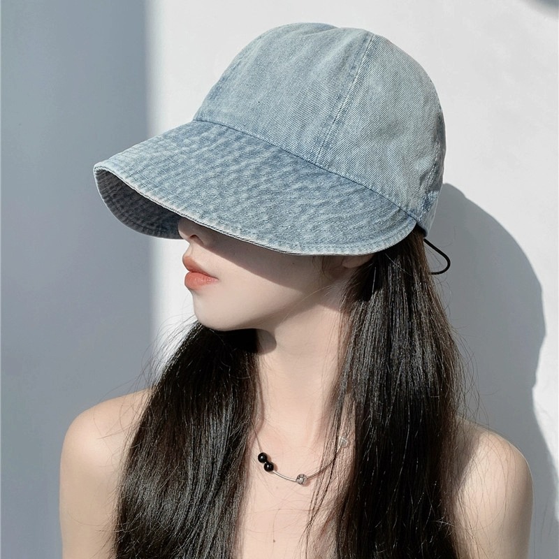 牛仔渔夫帽夏季女款百搭素颜盆帽遮脸大头围时尚鸭舌防晒太阳帽子