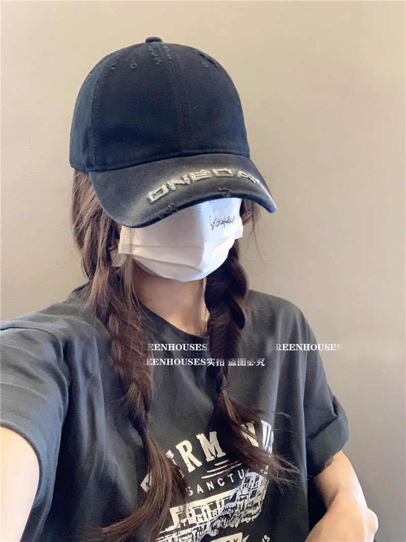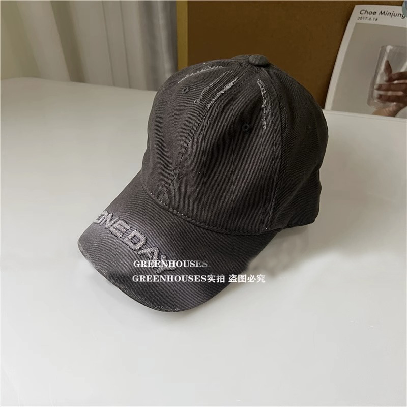 男女款韩版棒球帽字母刺绣做旧复古软顶鸭舌帽弯檐显脸小遮阳帽子