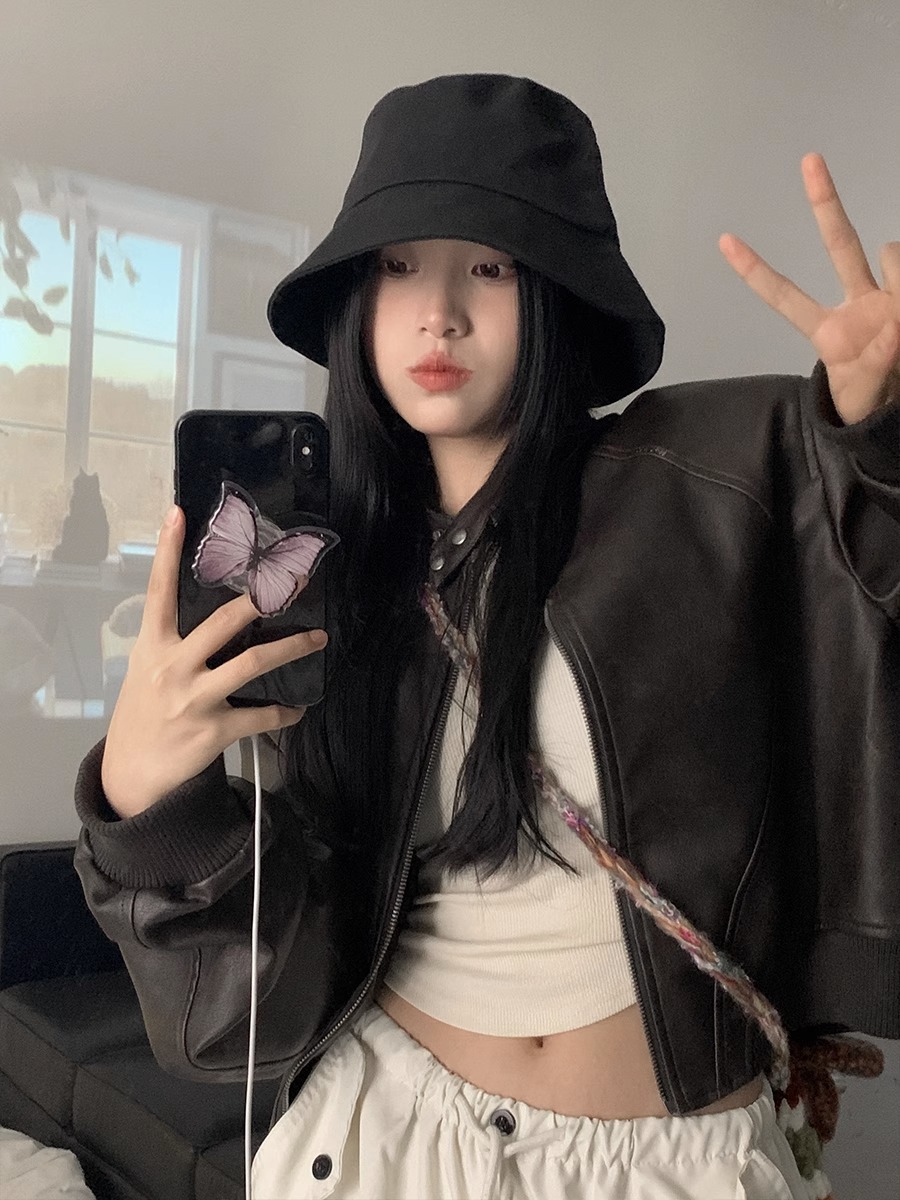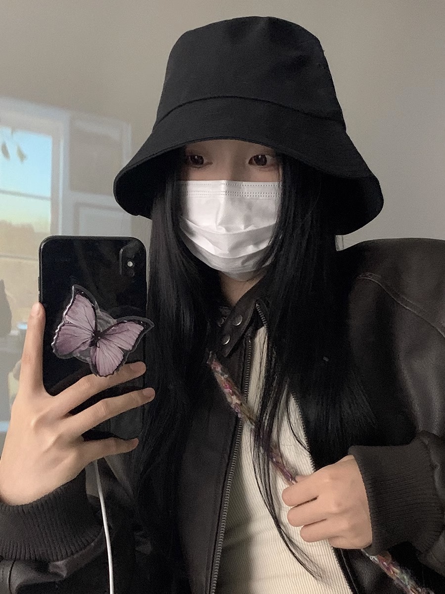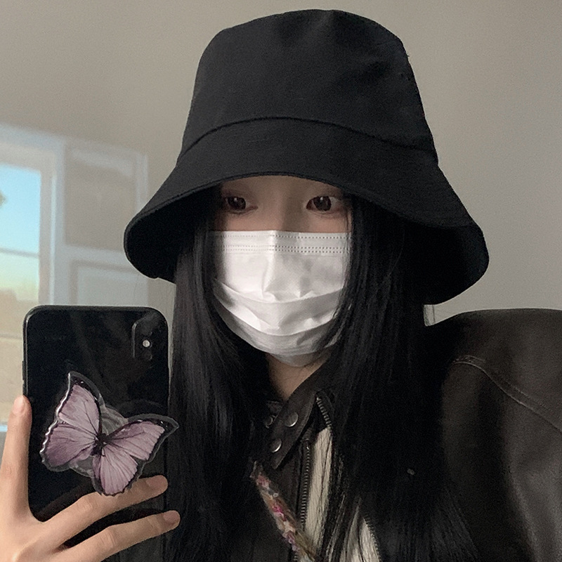 纯色渔夫帽秋季女大头围盆帽韩版黑色水桶帽逛街出游显脸小ins风