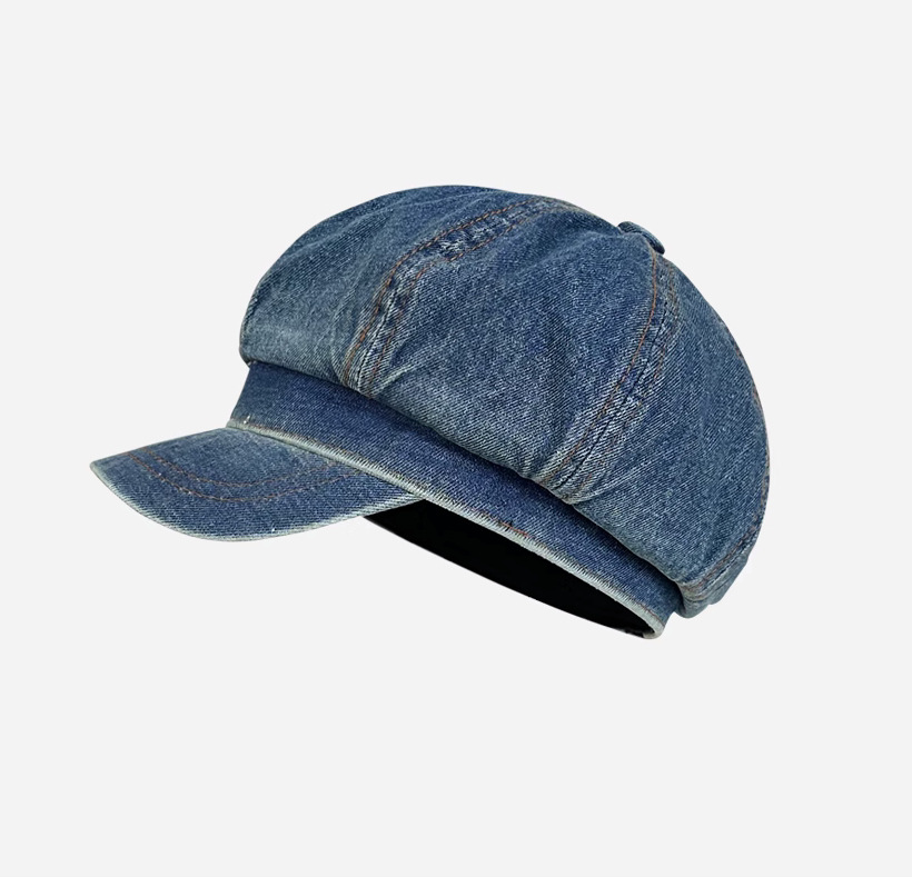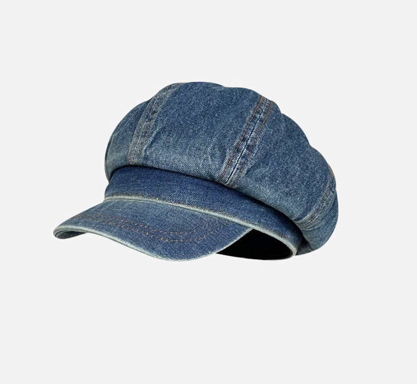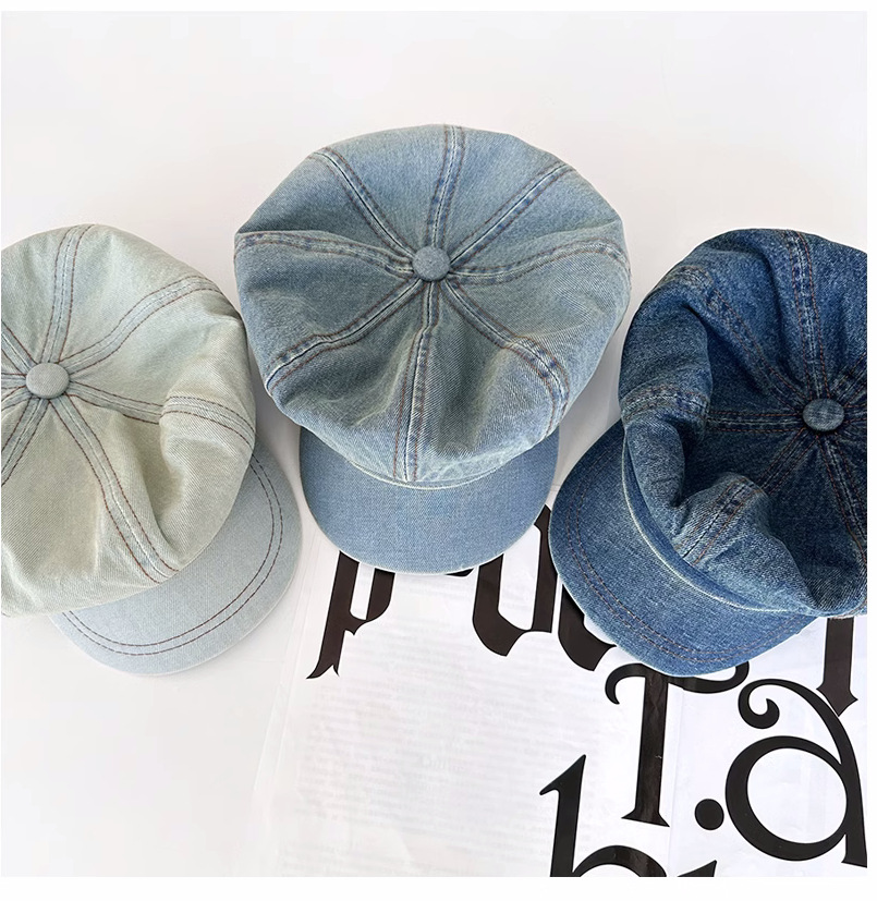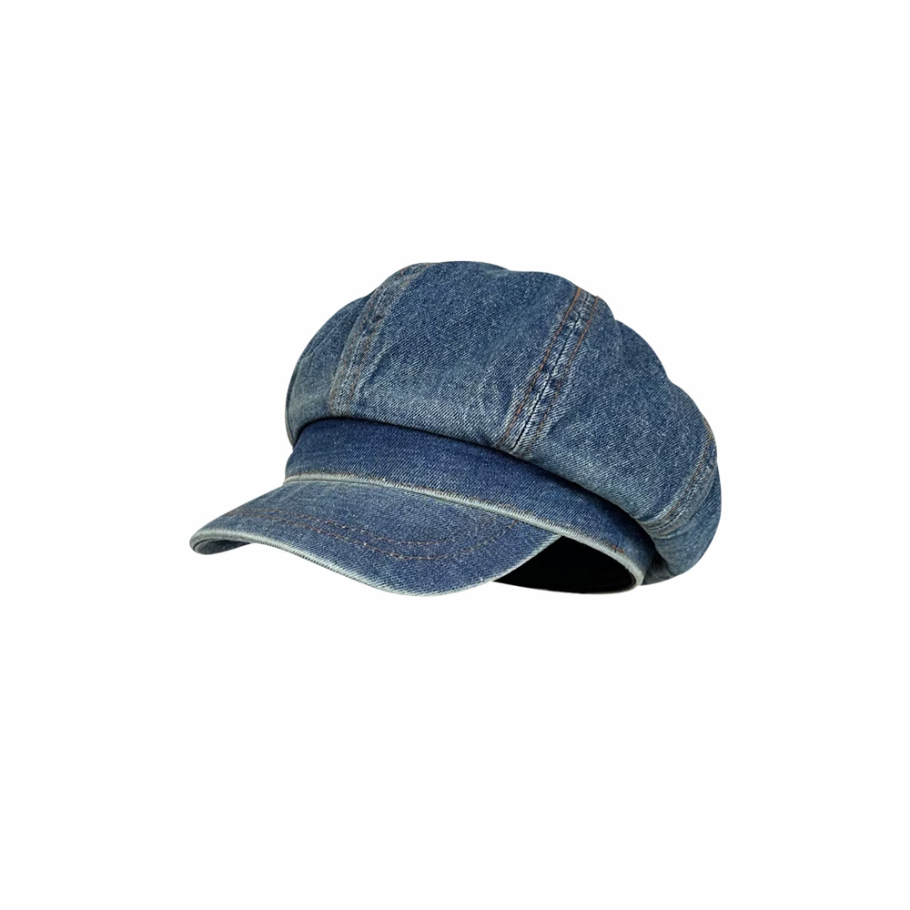 日系复古做旧牛仔贝雷帽子女显脸小百搭画家帽文艺八角帽报童帽潮